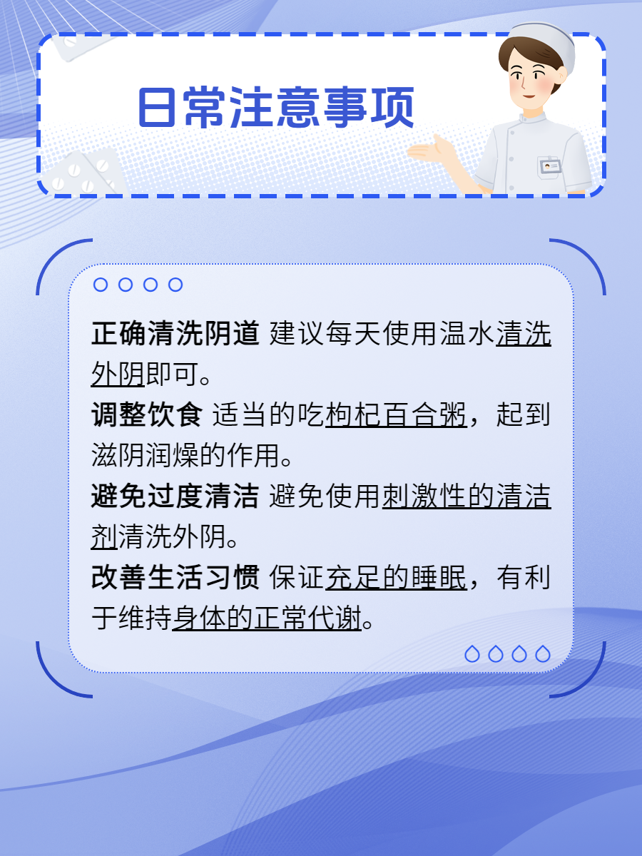 💁♀️3、避免过度清洁:过度清洁会破坏阴道的自然平衡,导致干涩。建议避免使用刺激性的清洁剂或香皂清洗外阴。