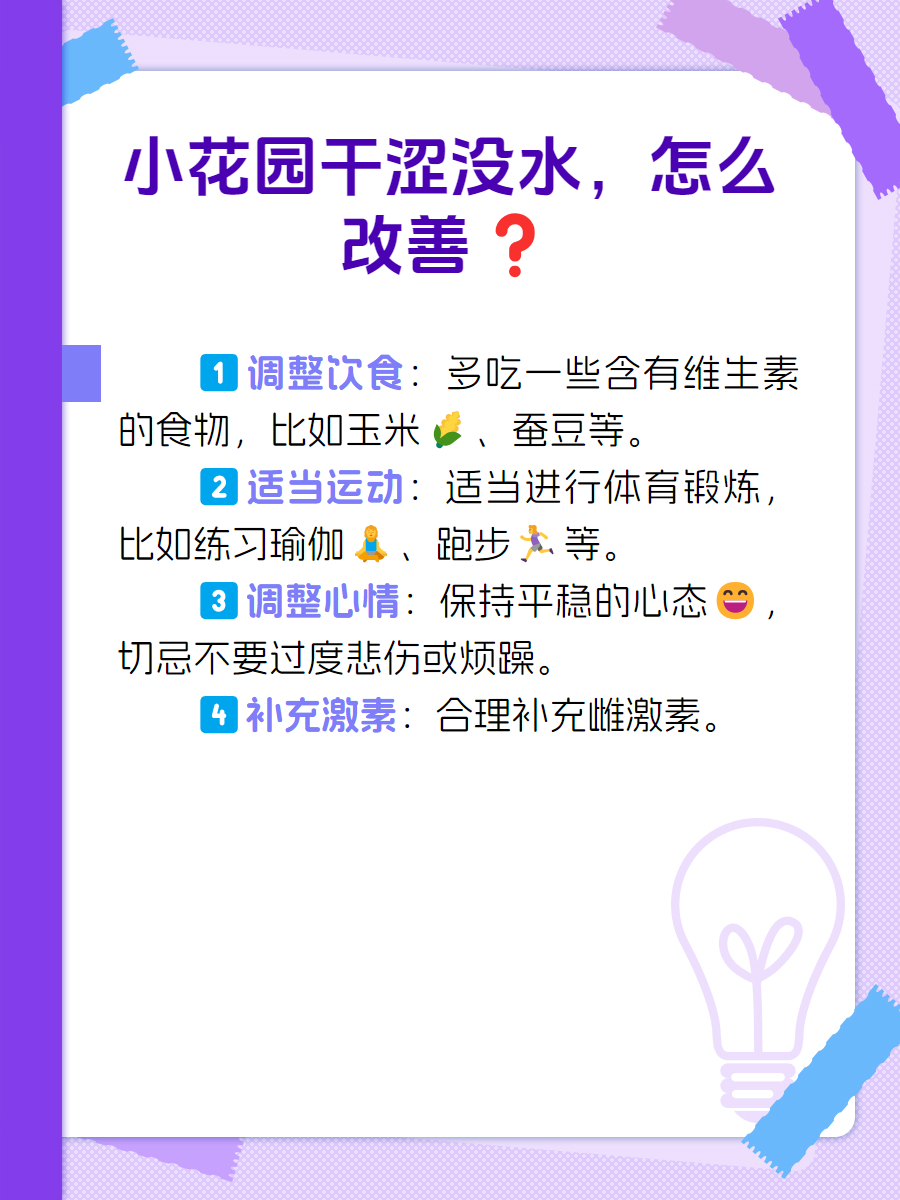 🌈需要注意的是,如果女性阴道干涩、没水的情况比较严重,而且伴有其他症状,这时就需要及时去医院进行检查,然后配合医生治疗,以免将小病拖成大病💪