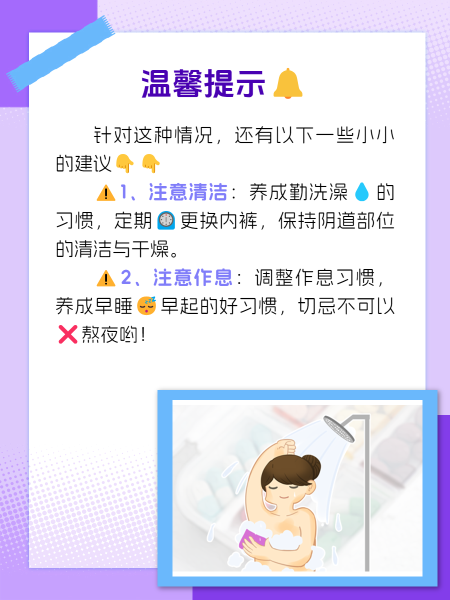 🌑1、注意清洁:要养成勤洗澡的习惯,定期更换内裤,保持阴道部位的清洁与干燥。