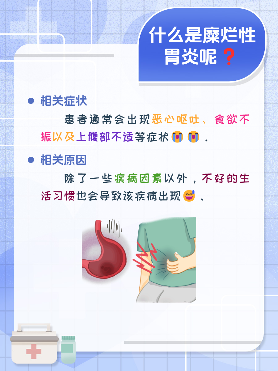患者楚先生因为饭后腹痛、呕吐🤮一周来医院就诊,经过相关检查后发现楚先生患有糜烂性胃炎😲。楚先生对于这个病很是陌生,我给他讲解了糜烂性胃炎到底是什么病❓