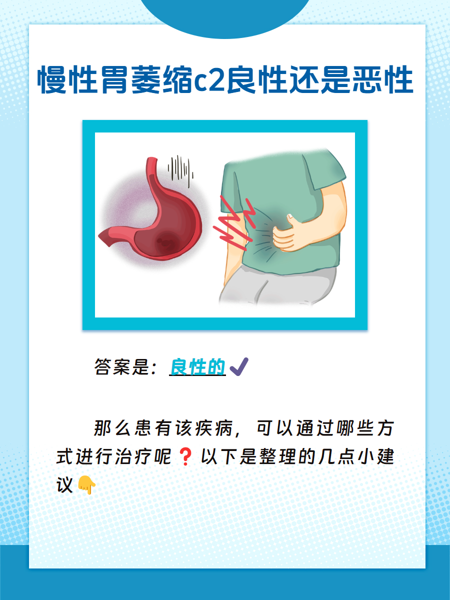 慢性胃萎缩是指慢性胃萎缩胃炎。最近在医院科室坐诊时,来了一位感觉到胃不舒服的患者,经过相应的检查,发现自己患有慢性胃萎缩胃炎,已经到了C2期,感到特别的担心😟。他不知道是良性的还是恶性的,特定前来医院进行咨询,我便告诉了他,叫他不要过度担心😟。那么慢性胃萎缩胃炎C2是良性的还是恶性的呢❓下面就让我们一起来看一下吧。👇