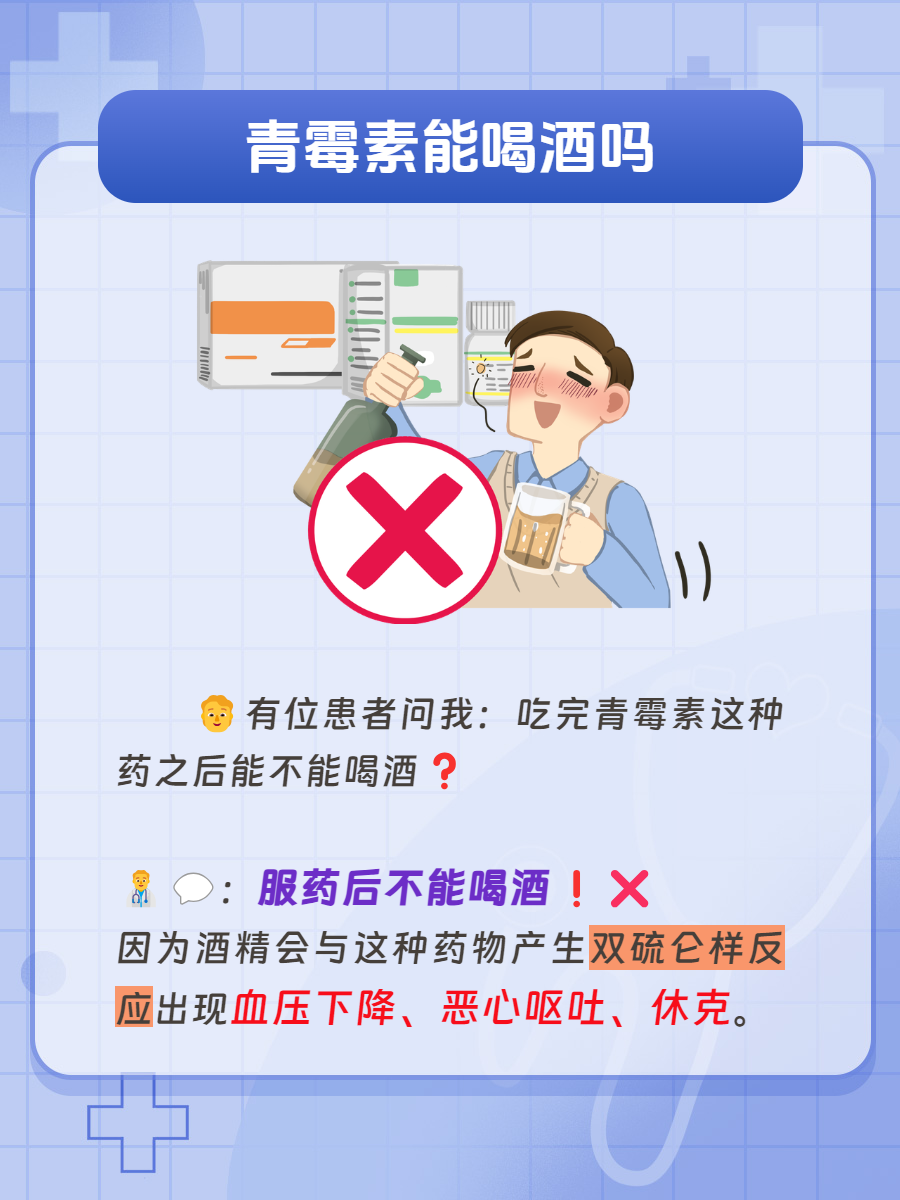 我记得是在去年有一位32岁男性给我打来电话,说最近出现了呼吸道感染的情况,今天中午吃了青霉素,但是晚上有一个饭局需要喝酒,听他说到这之后我就明白了,肯定是想问我吃了这种药之后能不能喝酒❓于是我给他进行了详细的解释~