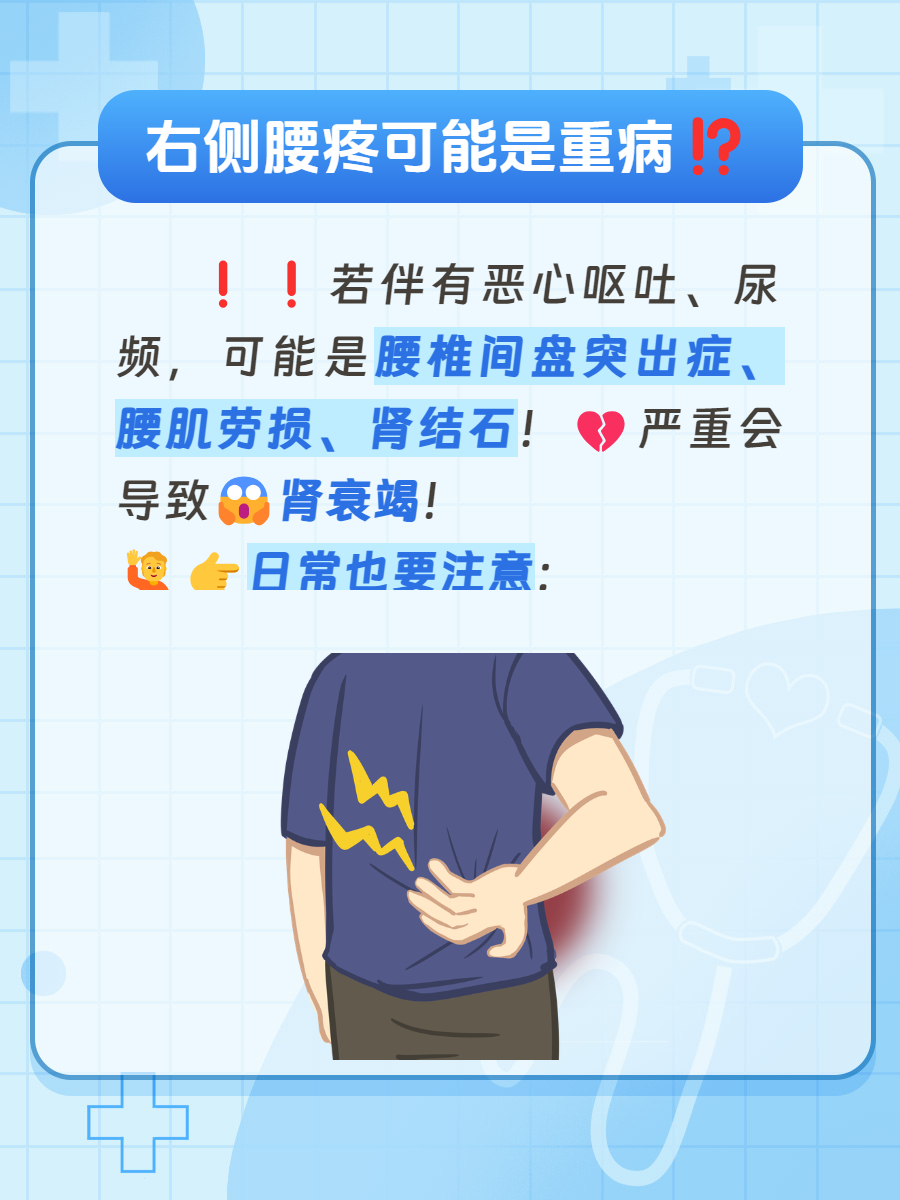 ‼️总之,右侧腰疼可能是某些重病的征兆。希望通过这次分享和病例解析能够提醒大家重视腰疼症状,并及时就医进行检查和治疗。