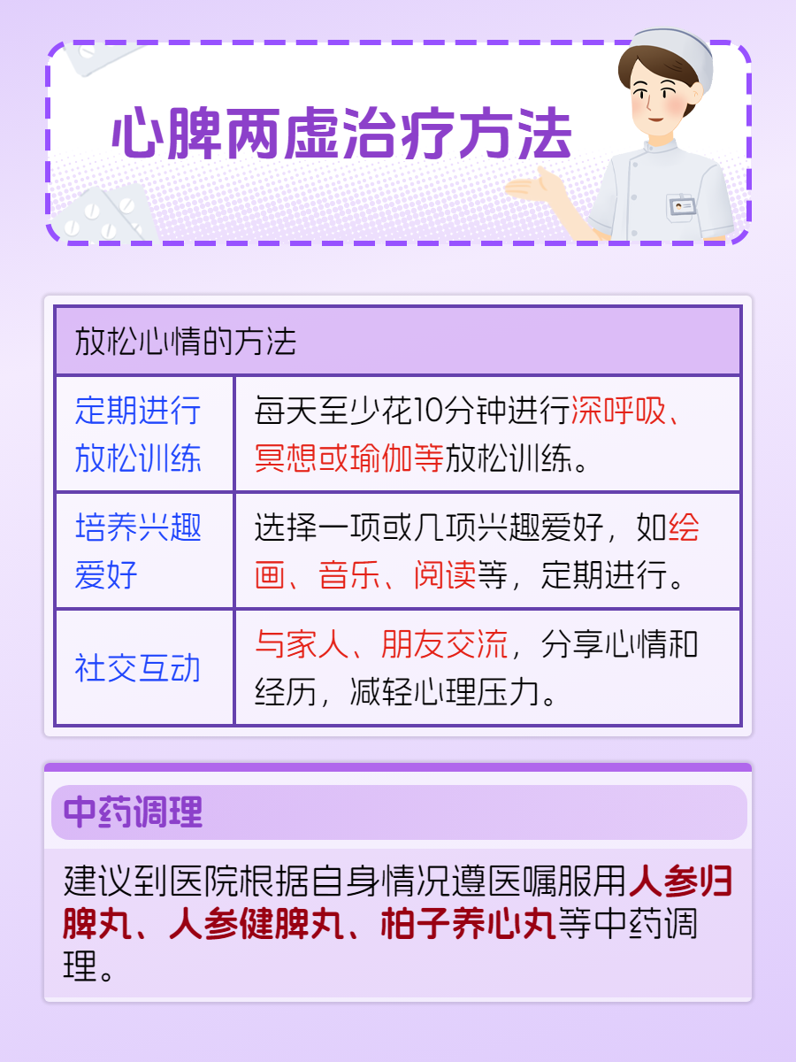 可以适当服用一些中药来调理心脾两虚,包括人参归脾丸、人参健脾丸或柏子养心丸等都是我主张的药物选择。