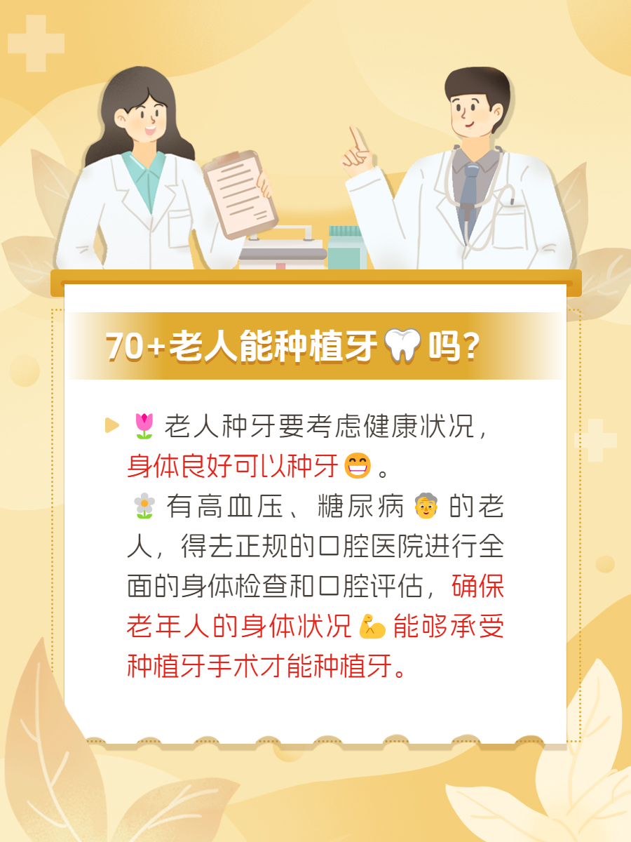 年龄并不是决定是否适合种植牙的唯一因素。🤗关键是要进行全面的身体检查和口腔评估,确保老年人的身体状况能够承受种植牙手术,并遵循牙医的建议进行术后护理。