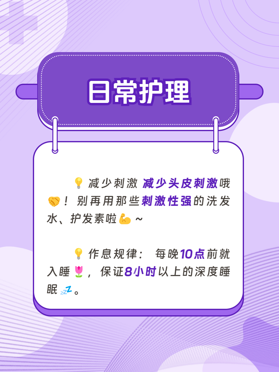 2、💡作息规律:每晚10点前就入睡,保证8小时以上的深度睡眠,这样新陈代谢和皮肤修复都能顺利进行,头皮问题也会慢慢改善哦!
