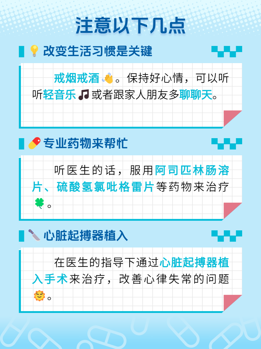 2、💊专业药物来帮忙:如果是因为冠状动脉粥样硬化性心脏病等疾病导致的,那就得听医生的话,服用阿司匹林肠溶片、硫酸氢氯吡格雷片等药物来治疗。这些药物能帮你改善病情,让心脏更健康哦!