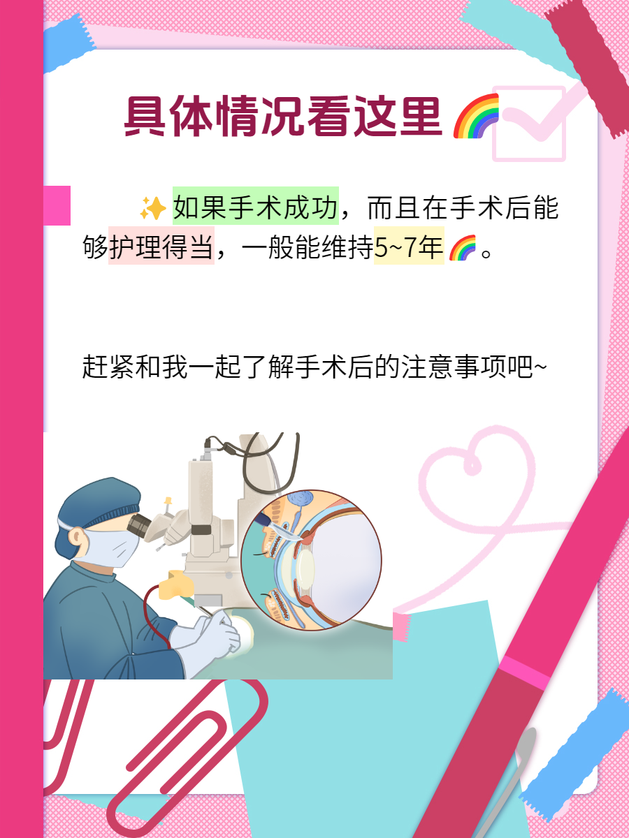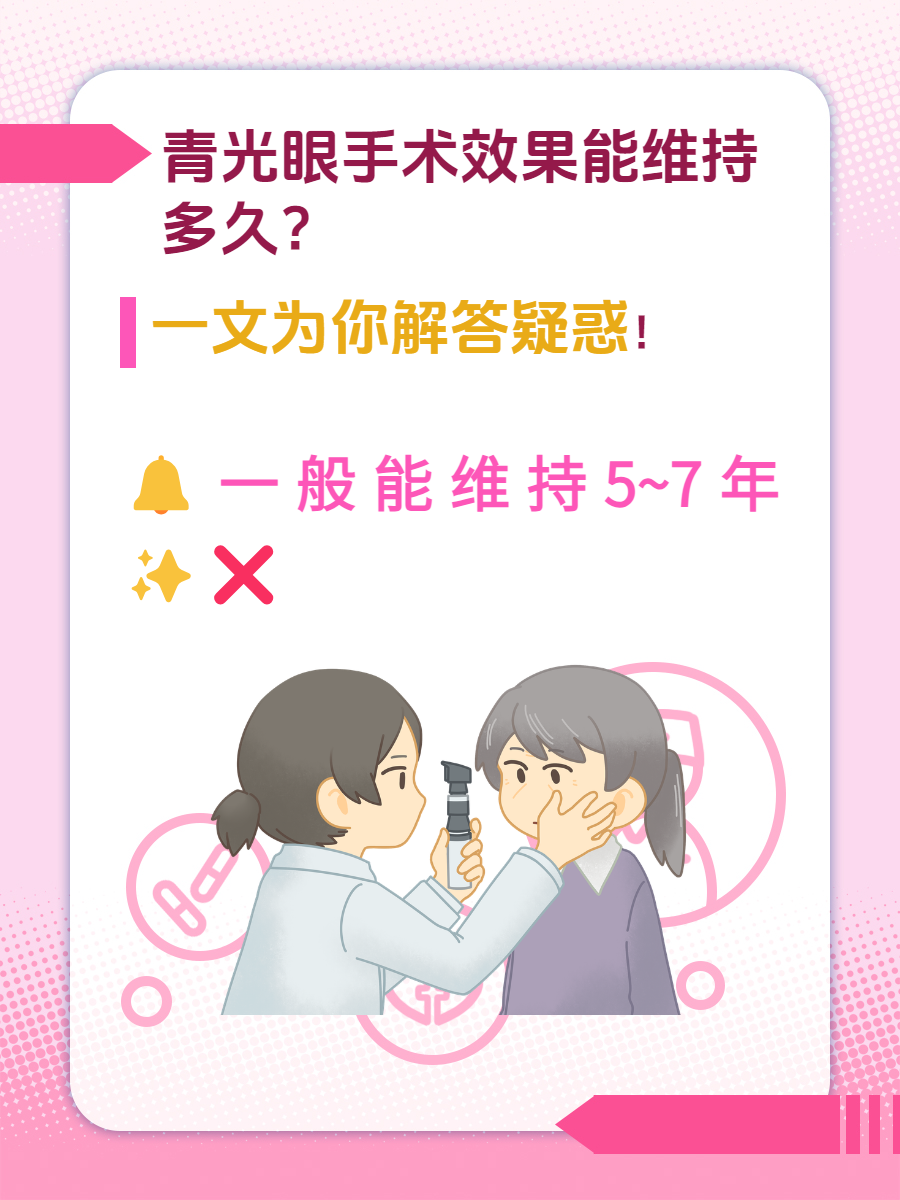 ✨根据陈女士的问题,我告诉她青光眼手术的效果因人而异,像她这种情况,如果手术成功,而且在手术后能够护理得当,一般能维持5~7年🌈。