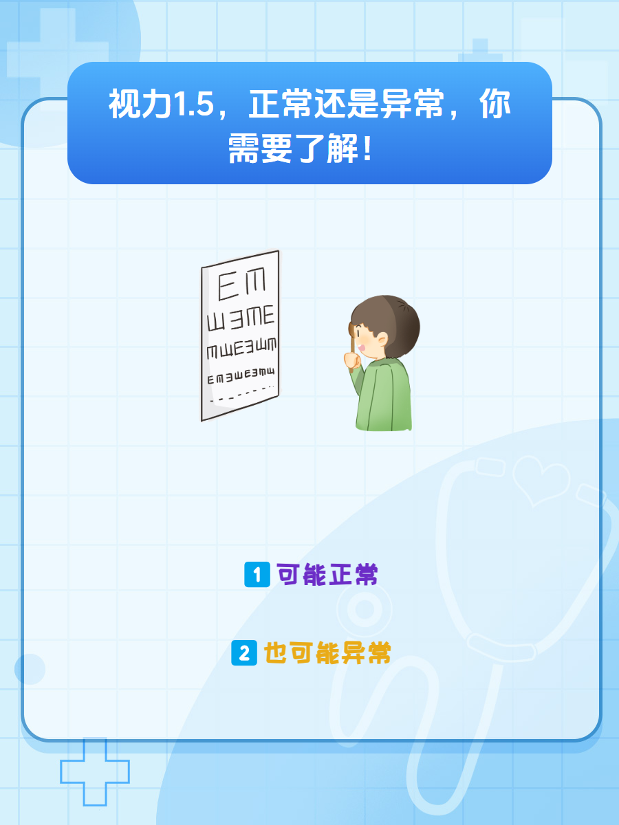 但由于每个人的工作性质不同、用眼不同,有些人的1.5视力会因为屈光度的差异存在轻度的远视散光。比如从事用眼过于精细的工作人群,像修理手表等工作。因此从事这种工作性质的人群就要注意了⚠️,1.5的视力可能存在问题。