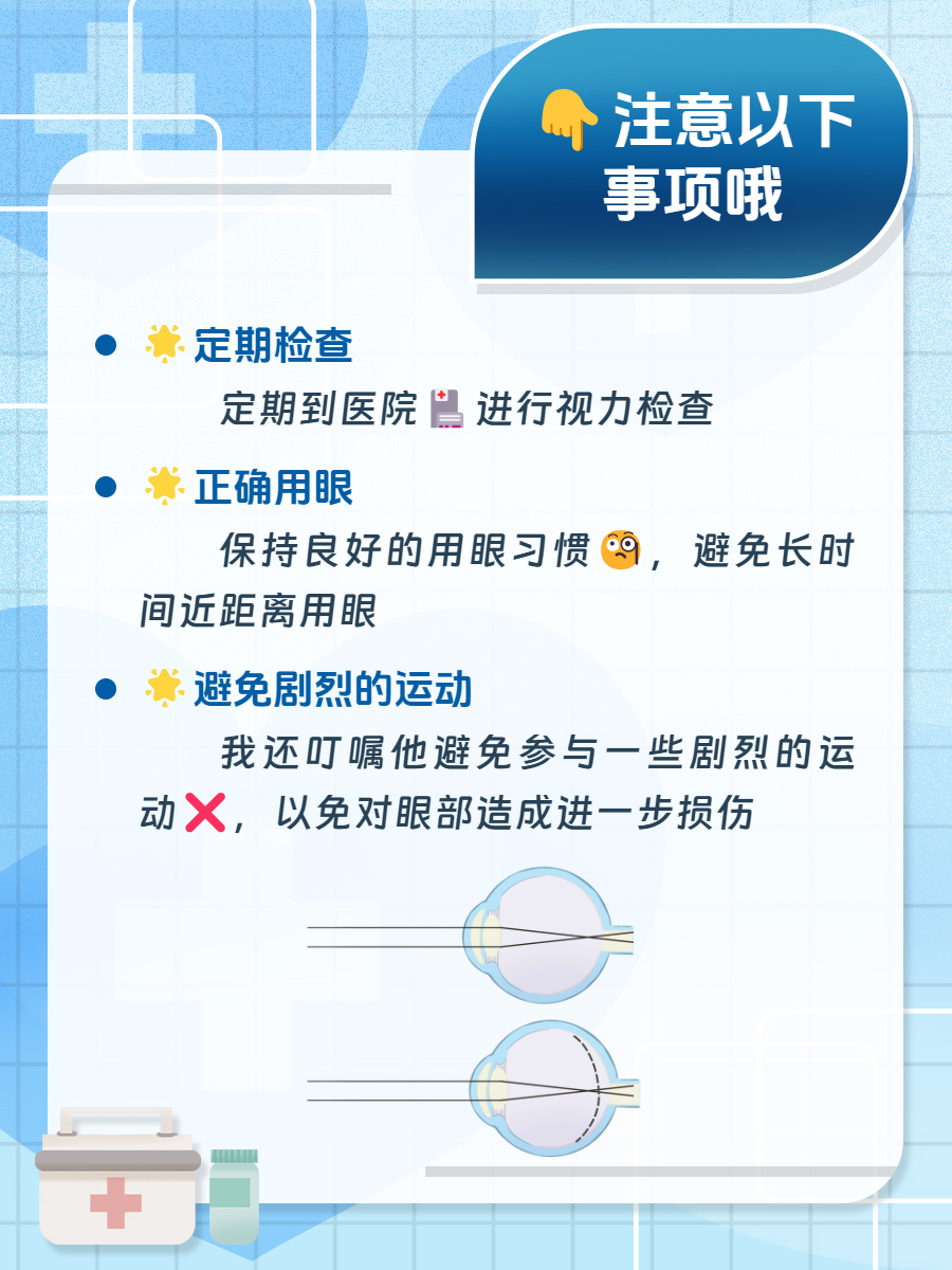 🌟3、避免剧烈的运动:我还叮嘱他避免参与一些剧烈的运动❌,比如跑跳、游泳等,以免对眼部造成进一步损伤。