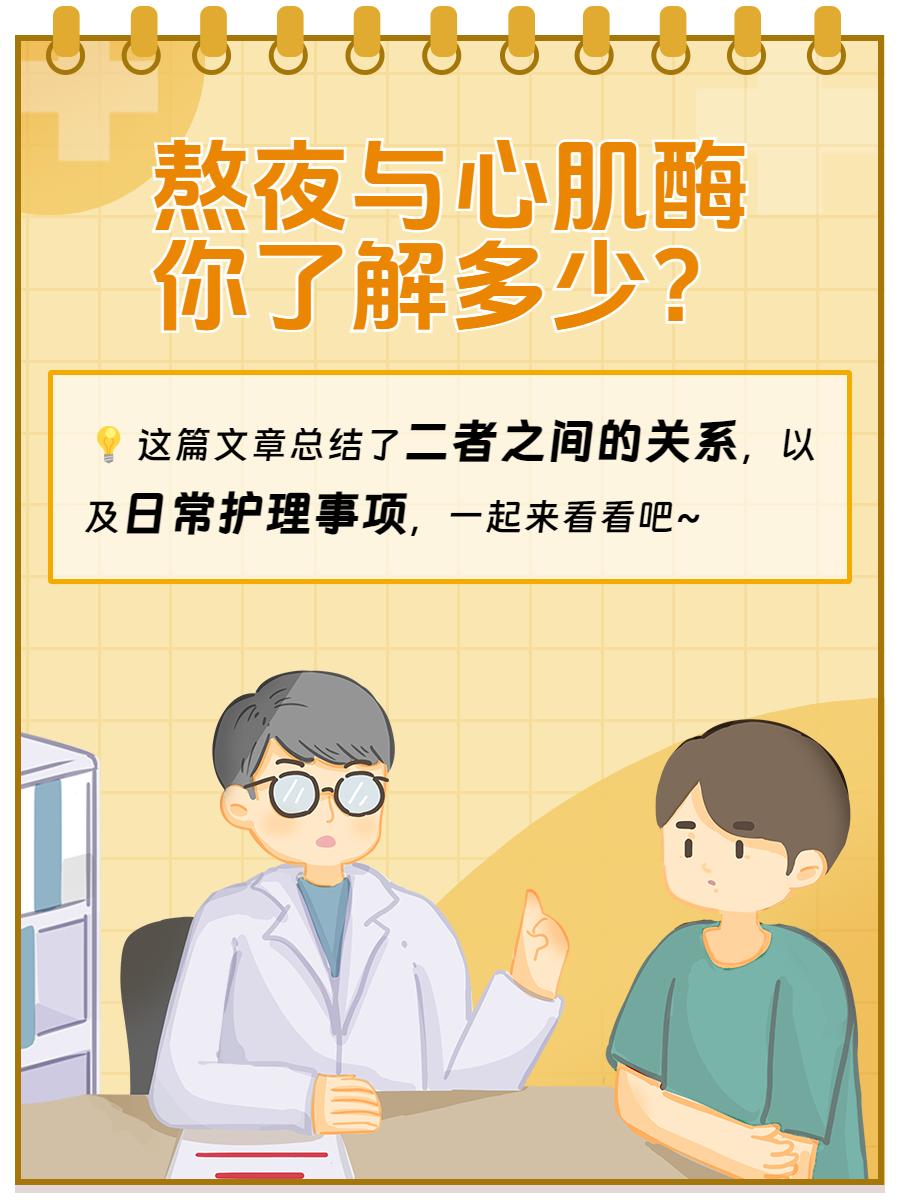 今天我的办公室里来了很多体检的人,然后有一个男性拿着他的报告单来找到我,看起来很年轻,一问才25岁,原来他在做心脏方面检查的时候,发现心肌酶的数值有点高。不知道这是怎么回事,在和他沟通的时候他告诉我,昨天晚上不知道为什么睡不着,所以熬夜了。进一步向我询问,熬夜会导致心肌酶高吗?针对于这个问题,我为他做了以下讲解,希望可以帮他解答这个疑惑。