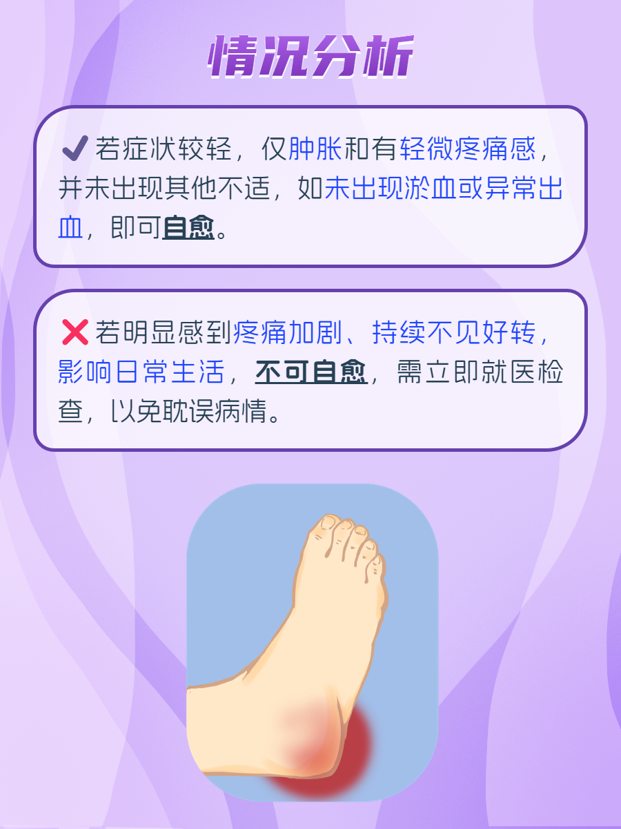 我告诉他,脚踝受伤了,比如扭伤或者用得太厉害。这会让脚踝里的软组织发炎,造成肿胀和疼痛。🔔如果没出现明显的淤血或出血,这种肿胀过一段时间就能自己好起来👌。但是,如果肿胀很久都不好,或者疼得厉害、发烧、脚踝🦶不能正常活动,一般不能自愈,这种情况就要赶紧联系我🥼,看看有没有更严重的伤,比如骨折或者韧带受伤。