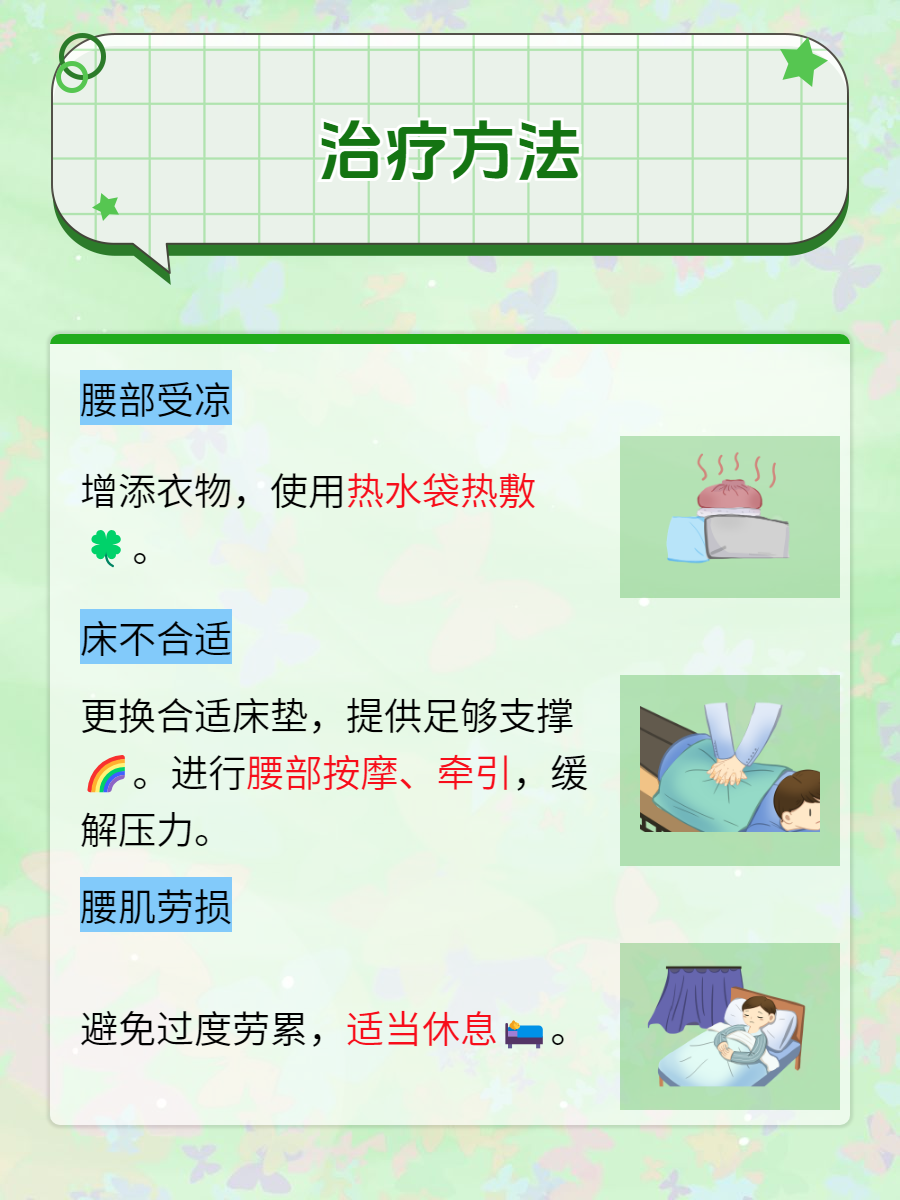 此外,腰背肌筋膜炎、腰椎间盘突出症等也可能引发睡醒腰痛的症状💥。当出现睡觉起来腰疼的情况时,有一些注意事项需要牢记。要适当休息,避免过度活动加重腰部疼痛😴。如果腰痛症状持续不缓解或者加重,一定要及时就医,进行相关的检查和诊断,以便确定病因并采取针对性的治疗措施📋。