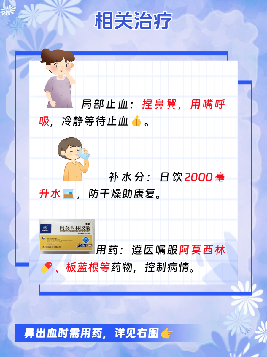🌺 局部止血:流鼻血时,首先要保持冷静,不要惊慌。可以轻轻捏住鼻翼两侧,用嘴呼吸,一般几分钟后能止血。