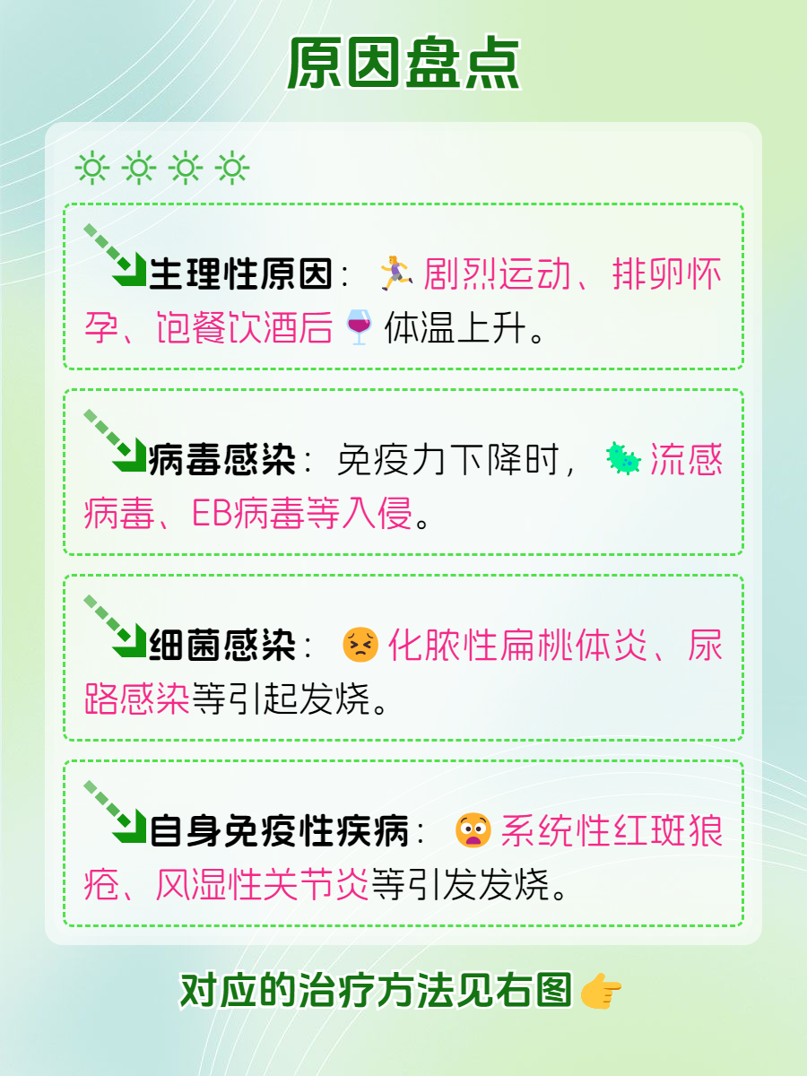 生理性原因💙:生理性原因的无症状发烧,通常与我们的日常生活习惯有关。比如,剧烈运动后,体温会略有上升;女性在排卵期或怀孕期间,由于体内激素的变化,也可能出现体温升高的现象。此外,饱餐一顿、洗完热水澡或饮酒后,体温也可能会有所上升。