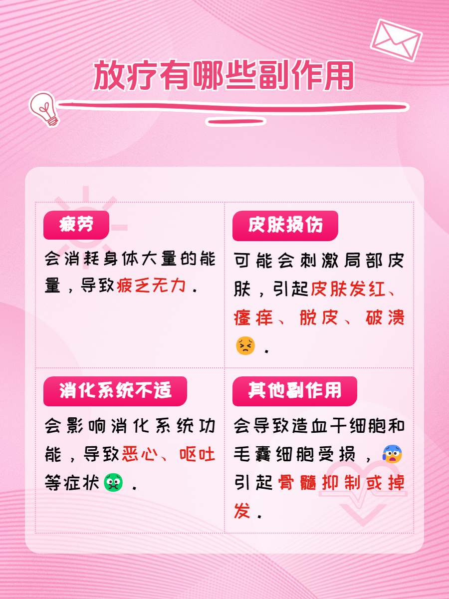 放疗的副作用,这是一个值得关注的话题。放疗是治疗肿瘤的重要手段之一😎。但我觉得放疗就像一把双刃剑,在对抗肿瘤的同时,也可能带来一些副作用😖。