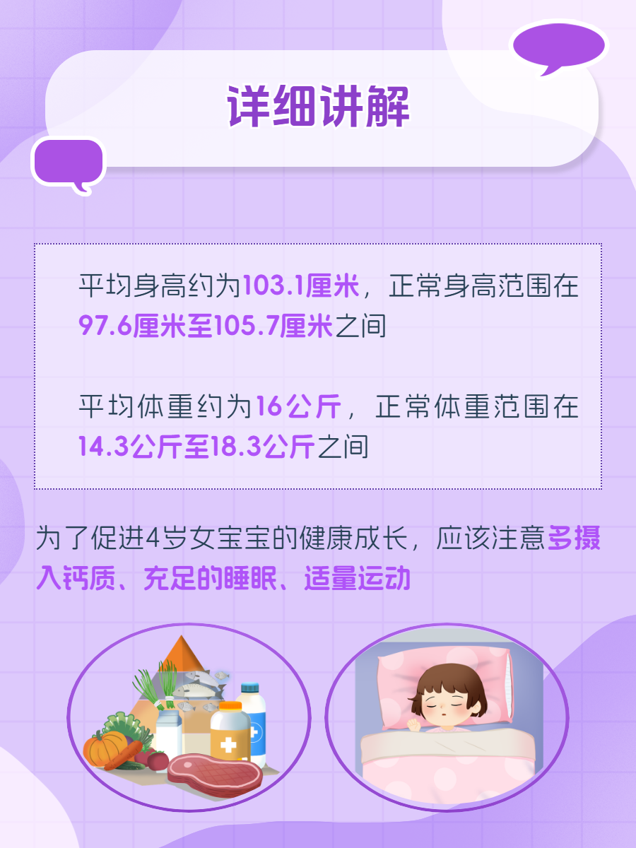 根据多项医学研究及儿科专家的建议,4岁女宝宝的身高和体重标准大致如下: