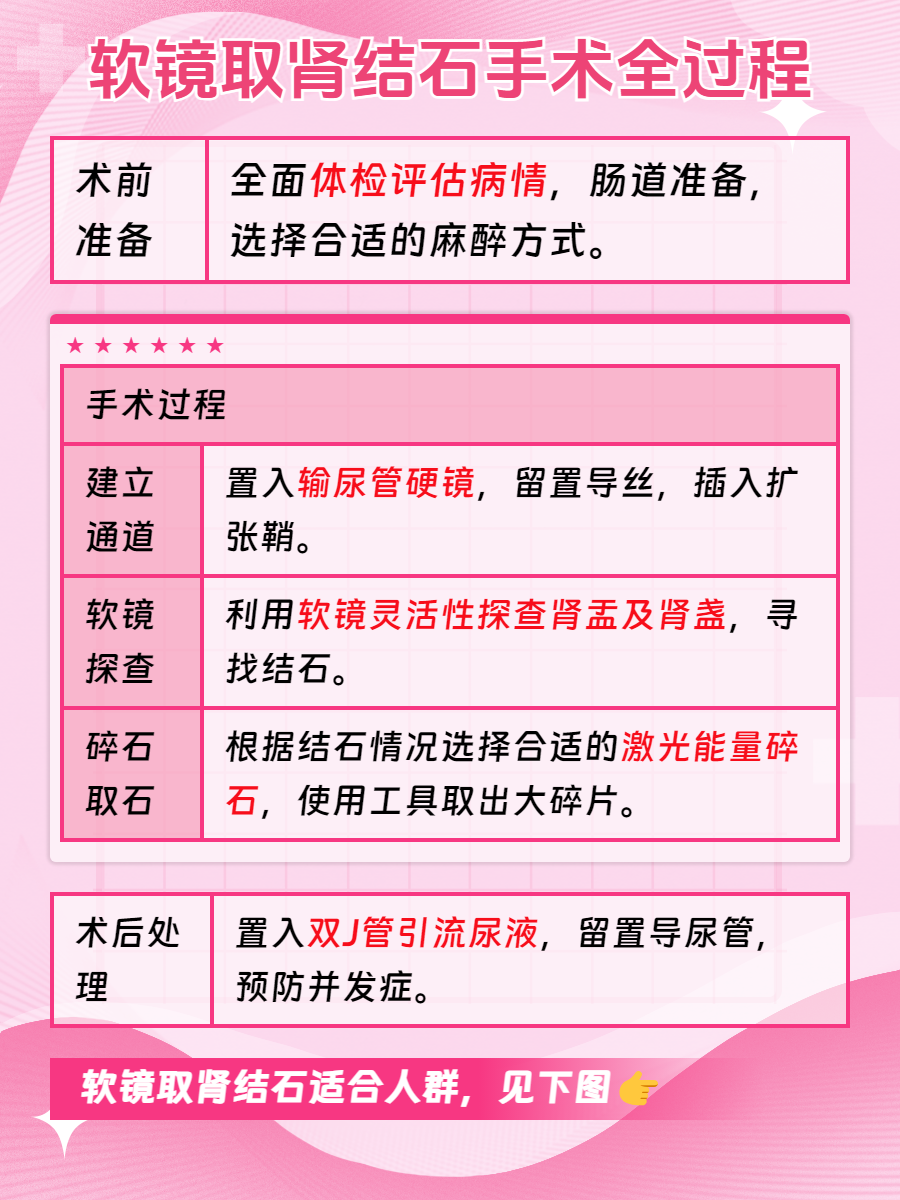 🌟软镜取肾结石如同一颗璀璨的星辰,以其微创、高效的特性,为众多肾结石患者带来了福音。💖但是还是有很多人不了解软镜取肾结石手术,下面就让我们一起来了解一下软镜取肾结石的全过程,并揭秘哪些人群最适合这一治疗方式。🚀
