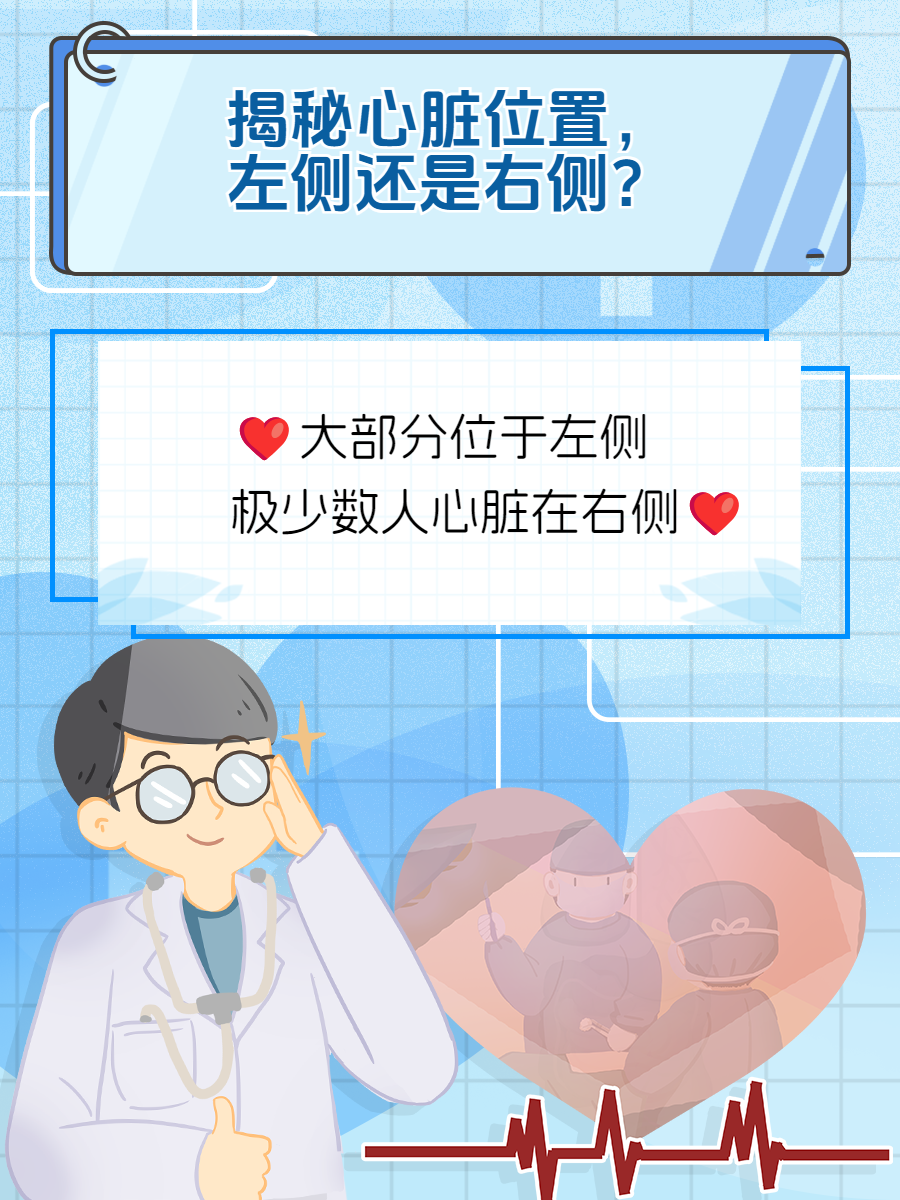 在临床工作中,我遇到很多患者对心脏位置有疑问,心脏是位于胸腔内的器官,日夜不息地跳动着,为全身输送着生命的血液。那么,人的心脏究竟是位于胸腔左侧还是右侧呢?我来给大家解答一下。??在绝大多数情况下,人... 详细»