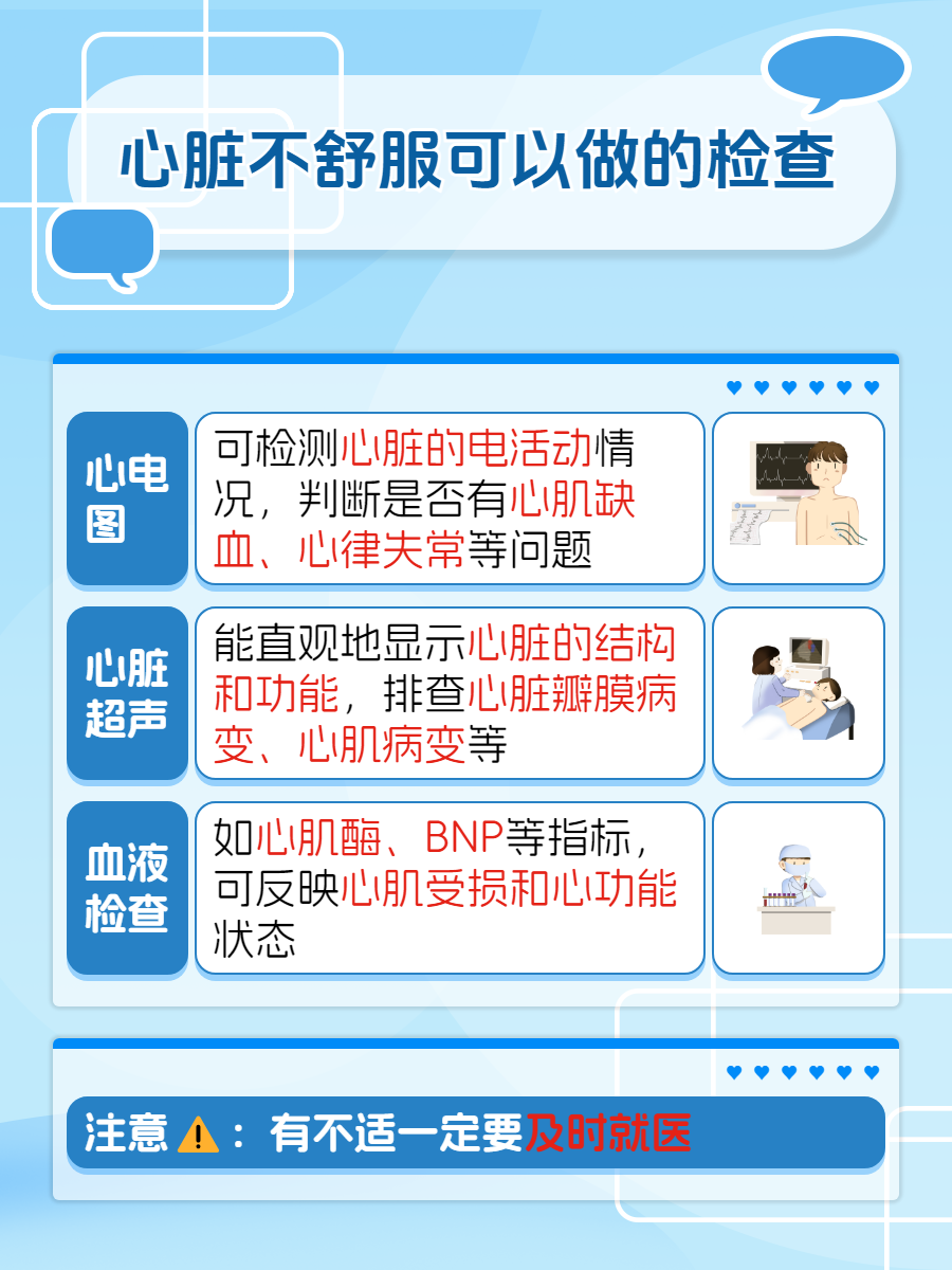 ✔️3、注意症状:如果出现心悸、胸闷、胸痛、呼吸困难等症状,应及时就医,以便早期发现和治疗心脏疾病。