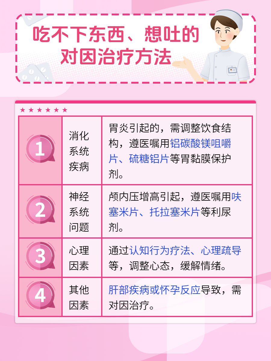 😖再者,心理因素也可能影响食欲和消化系统功能。例如,焦虑、抑郁、压力等情绪问题可能导致食欲不振和恶心呕吐。这些心理因素通常伴有情绪低落、失眠、注意力不集中等症状。