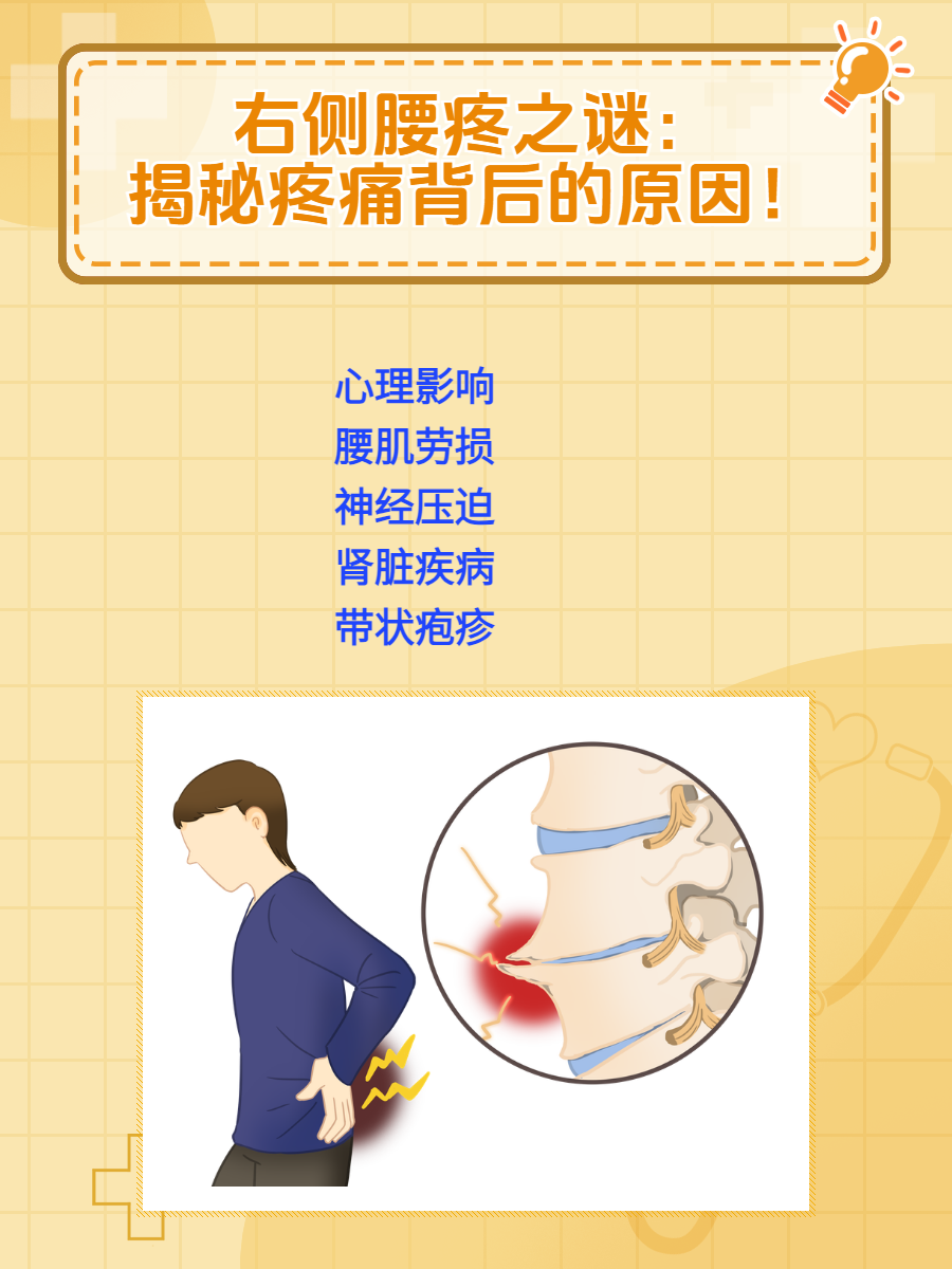 🌟 腰疼仿佛成了一种“流行病”,而右侧腰疼更是让人苦不堪言。它不仅影响着我们的日常生活,还可能是身体发出的重要健康预警。为什么会出现这种情况呢?让我们来一起了解一下吧。🔍