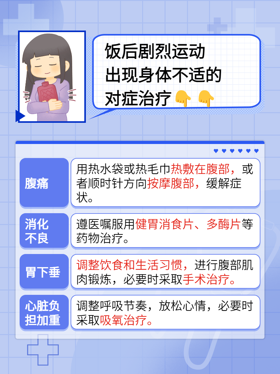 💔4、心脏负担加重:剧烈运动本身会使心脏负担加重,而饭后身体需要消化食物,心脏又要为消化系统供血。如果此时进行剧烈运动,心脏负担会进一步加重,容易引起心悸、胸闷😣等不适症状。