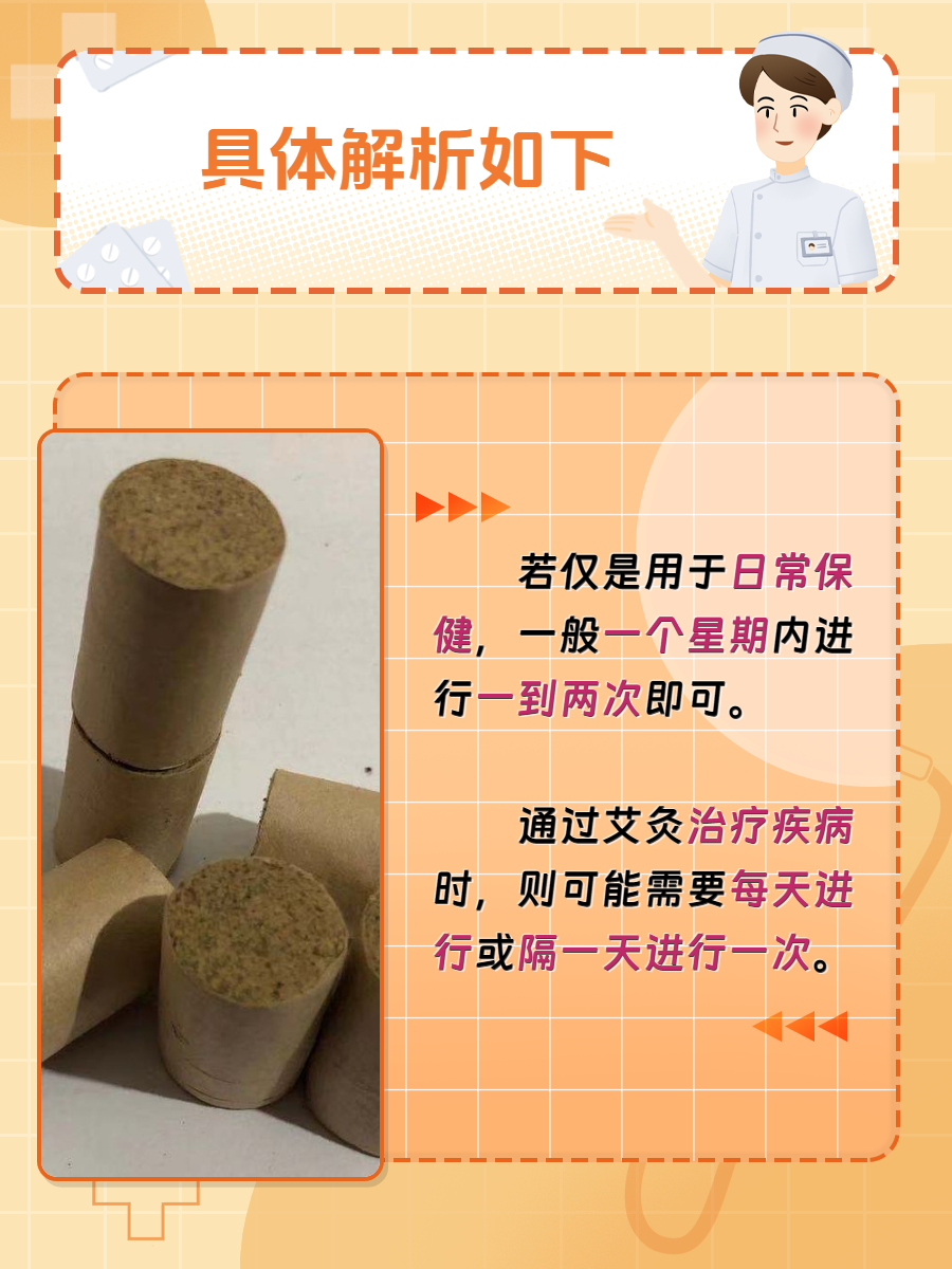 如果只是想要通过艾灸进行日常保健,一周进行1-2次就足够啦💆♀️!既能温通经络、调和气血,还能增强体质,让你从内到外散发光彩!✨