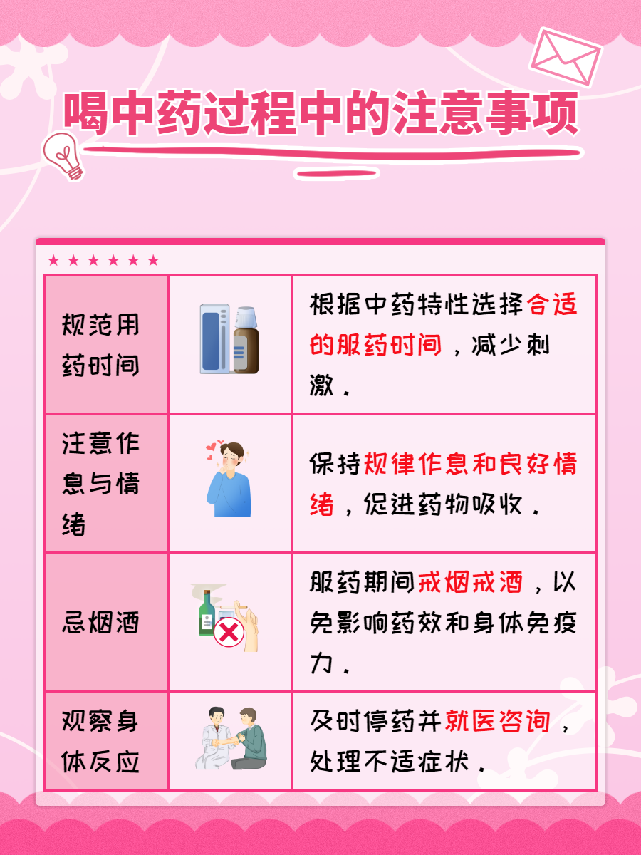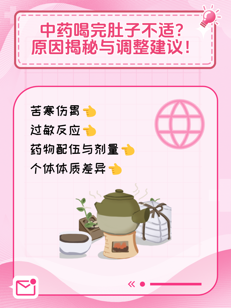 💡每个人对中药成分的反应不同,部分患者可能对某些中药成分过敏,饮用后会引起变态反应,刺激胃肠道,导致胃肠黏膜充血、水肿,出现不适。