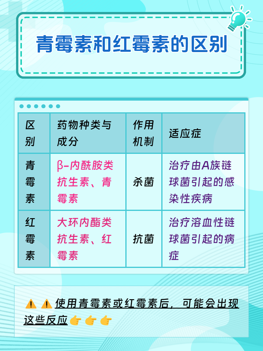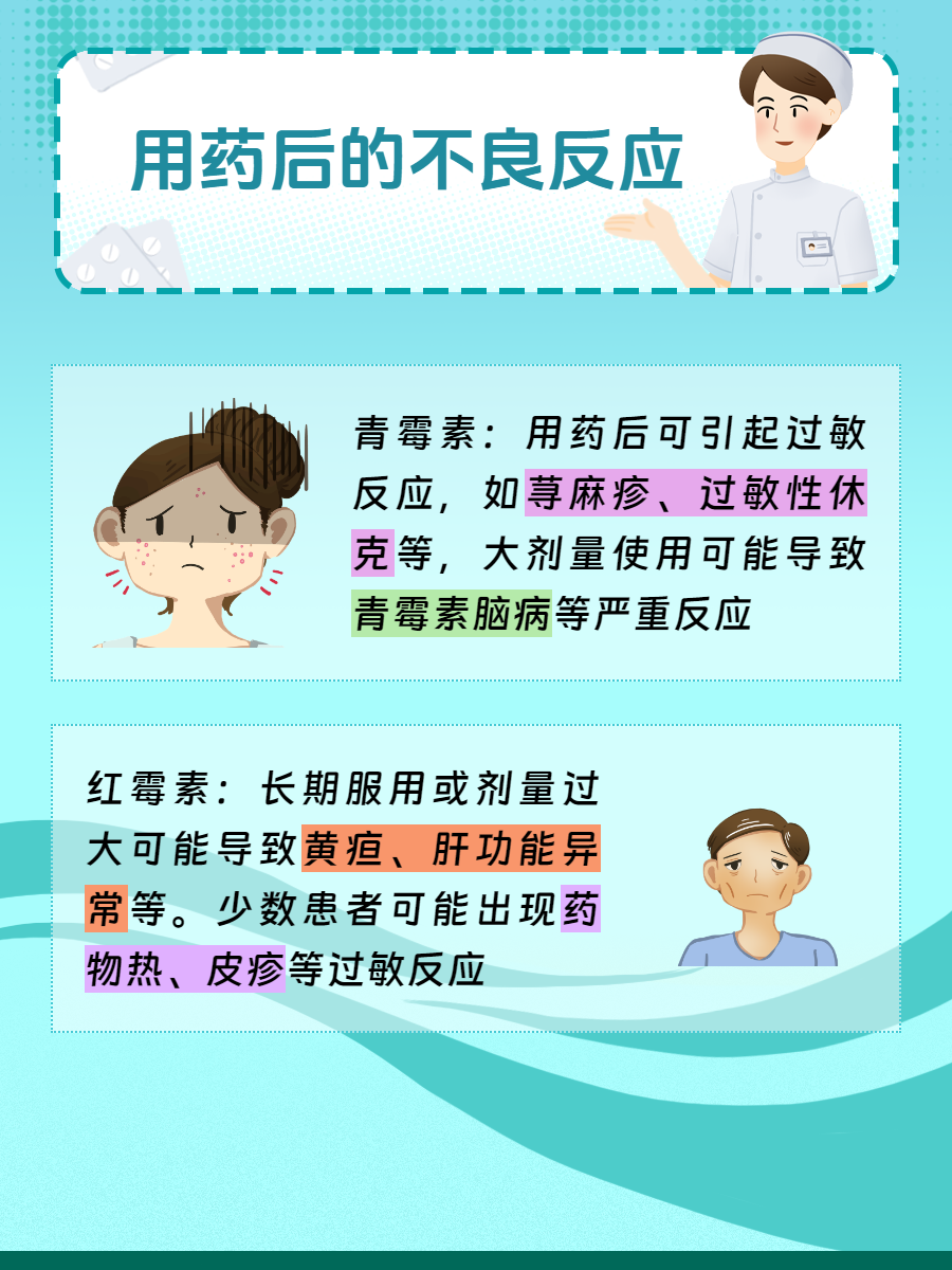 在这里我需要提醒大家,⭕️用药时需要严格遵循医生的建议,不可以盲目用药哦!⭕️使用青霉素和红霉素时需要注意这几点👇: