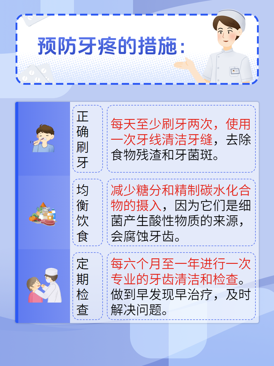 当然,以上方法仅适用于轻微或暂时缓解疼痛。如果疼痛持续不减或加重,务必及时就医,让专业的牙医进行治疗。