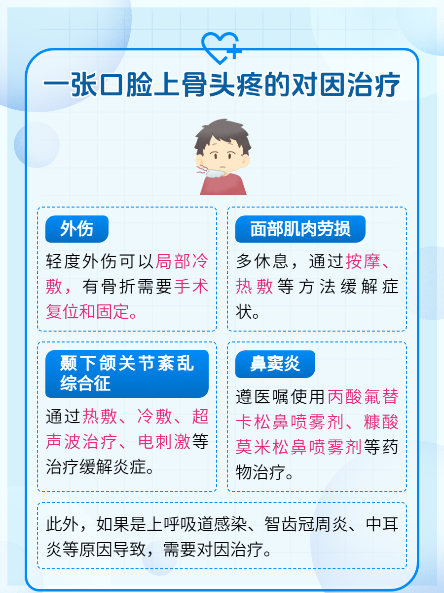 😖2、面部肌肉劳损:长期咀嚼硬物🍖、过度张口大笑😄或面部受凉🥶,可能导致面部肌肉紧张或劳损,引起疼痛,这种疼痛有时会被误认为是骨头疼。