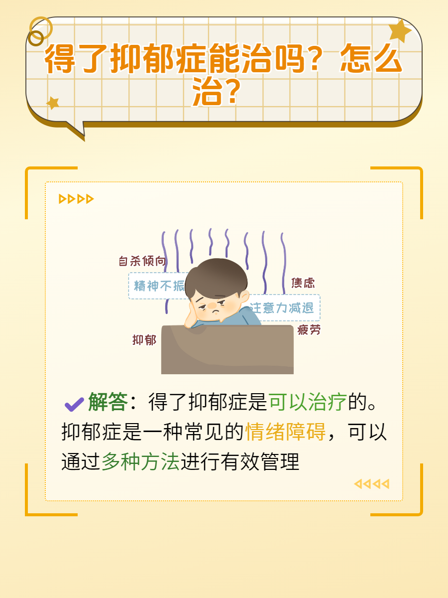 ✔️我认为这个问题的答案是肯定的!那就是抑郁症这种疾病是可以治疗的。
