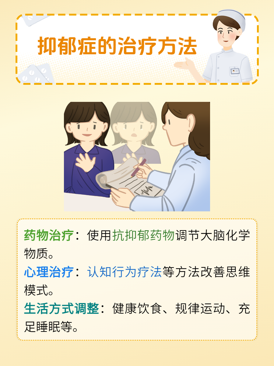 药物治疗是治疗抑郁症的常见方法之一。抗抑郁药物可以帮助调节大脑中的神经递质,改善情绪状态。需要注意的是在进行药物治疗时,是需要在医生的指导下进行的,因为每个人的情况都是不同的用药量以及药物也会有所不同。