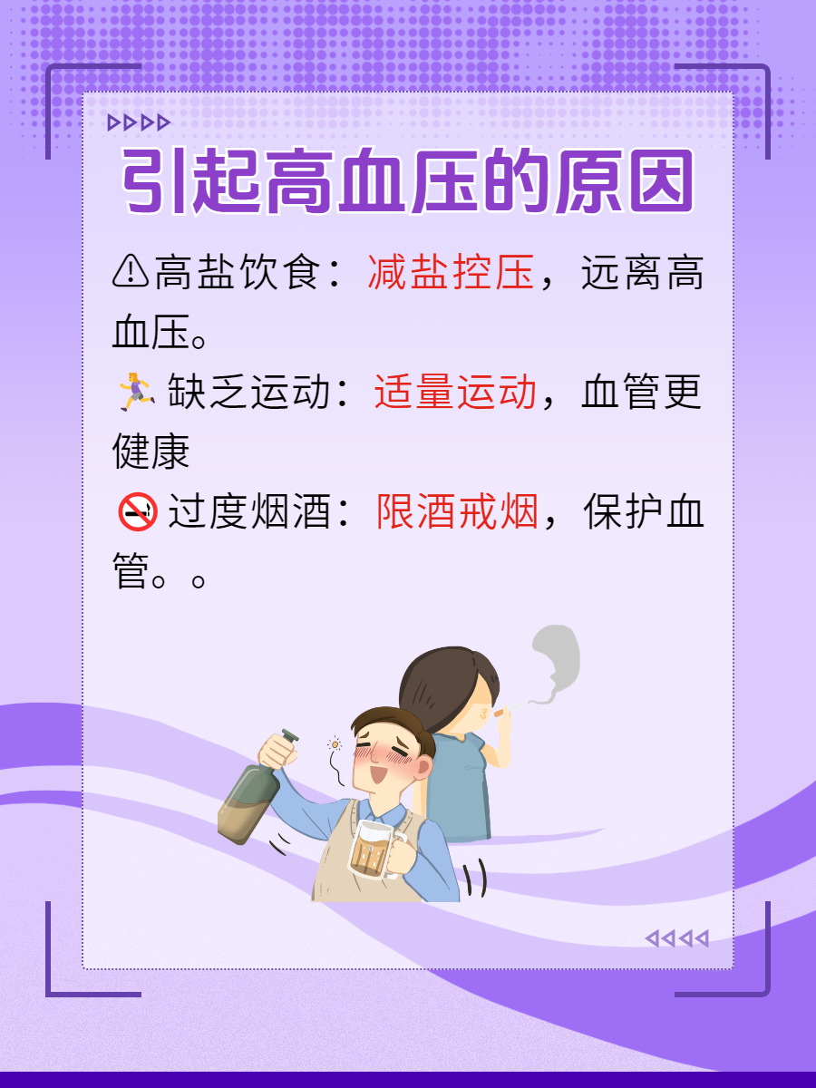 引起高血压的原因多种多样,我认为常见的有:高盐饮食🧂、缺乏运动🏃♂️、过度饮酒🍷、吸烟🚬、肥胖🏋️♂️、精神紧张😓等。调整这些生活习惯,可以有效预防和控制高血压。💪