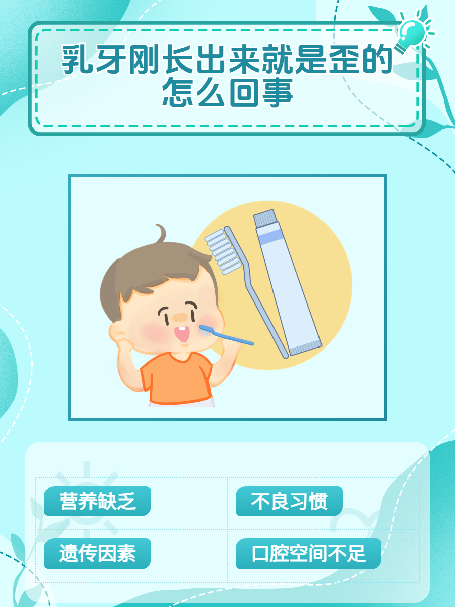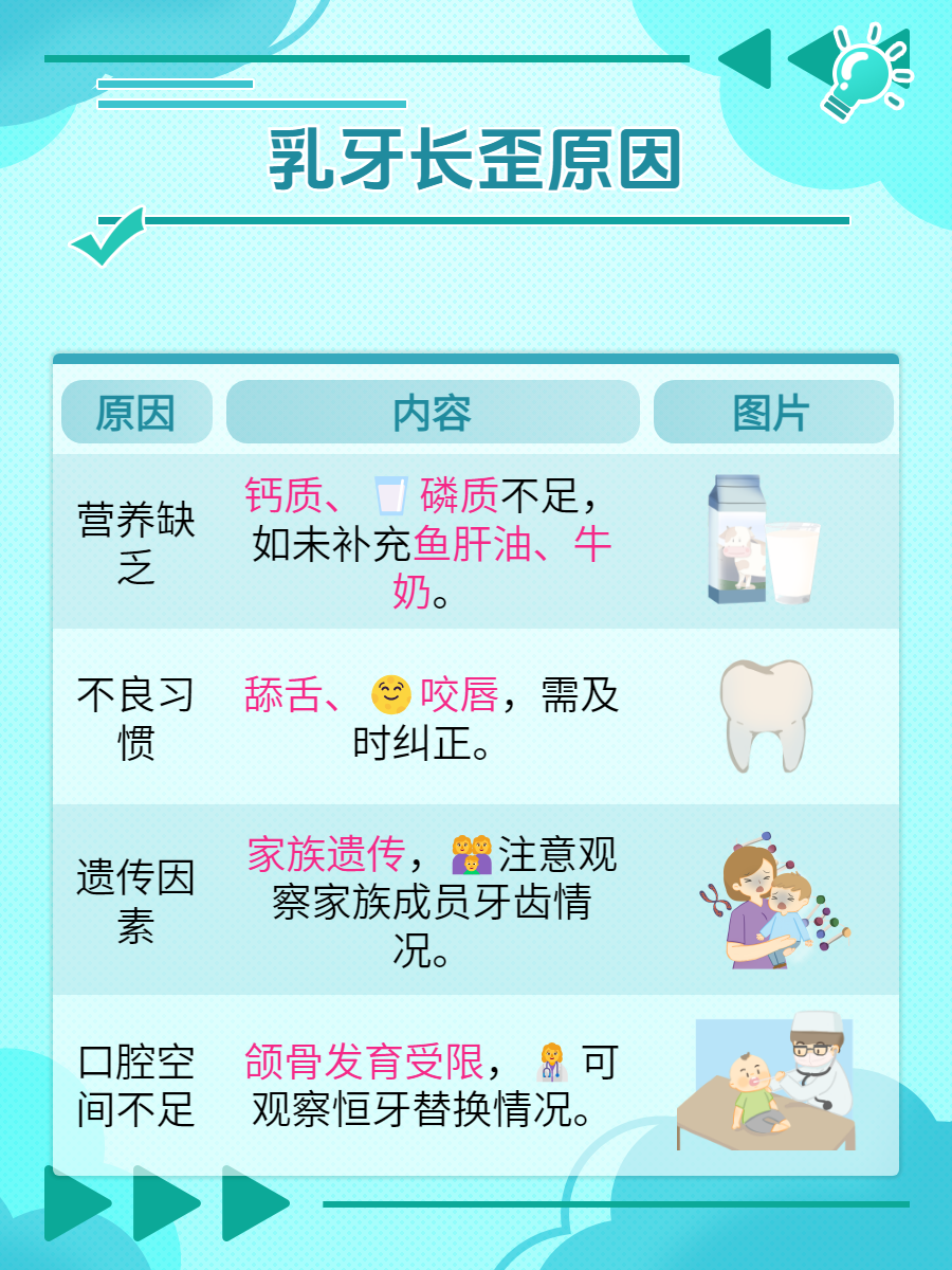 💪遗传因素:父母或家族中若存在牙齿排列不齐的情况,宝宝也可能会受到遗传影响,出现乳牙歪斜的现象。📢