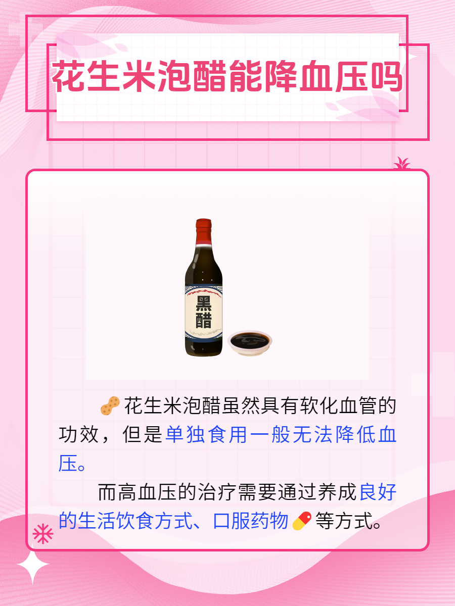 虽然醋🍾有一定的软化血管的作用,花生米中也含有一些营养成分,🥤但单纯靠吃花生米泡醋来降血压不太现实🤷♀️。