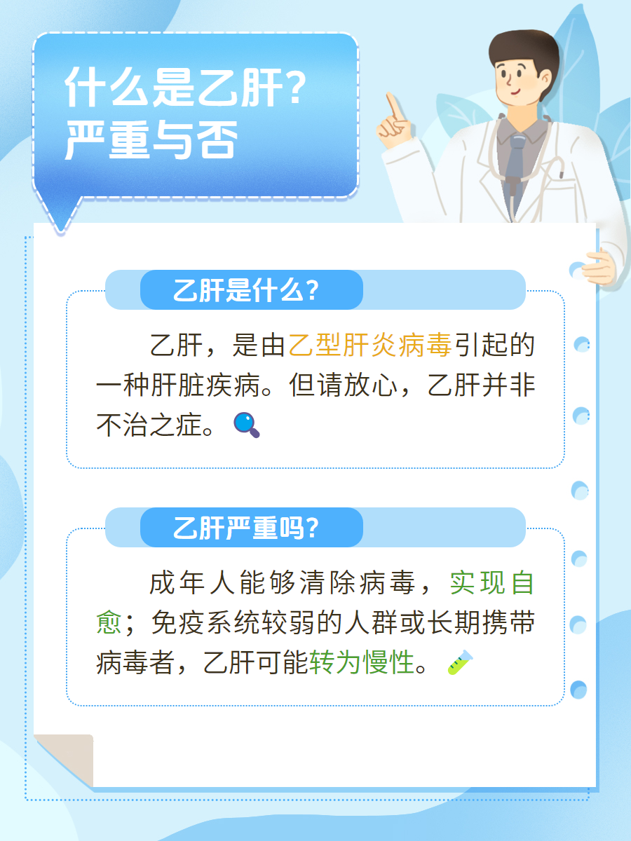 乙肝是一种由乙型肝炎病毒引起的肝脏疾病,其严重程度因人而异。通过接种乙肝疫苗、避免感染途径、积极治疗和保持良好的生活习惯等措施,我们可以有效预防和控制乙肝的发生和发展。作为医生,我呼吁大家正确认识乙肝,科学应对不恐慌,共同守护肝脏健康!💖