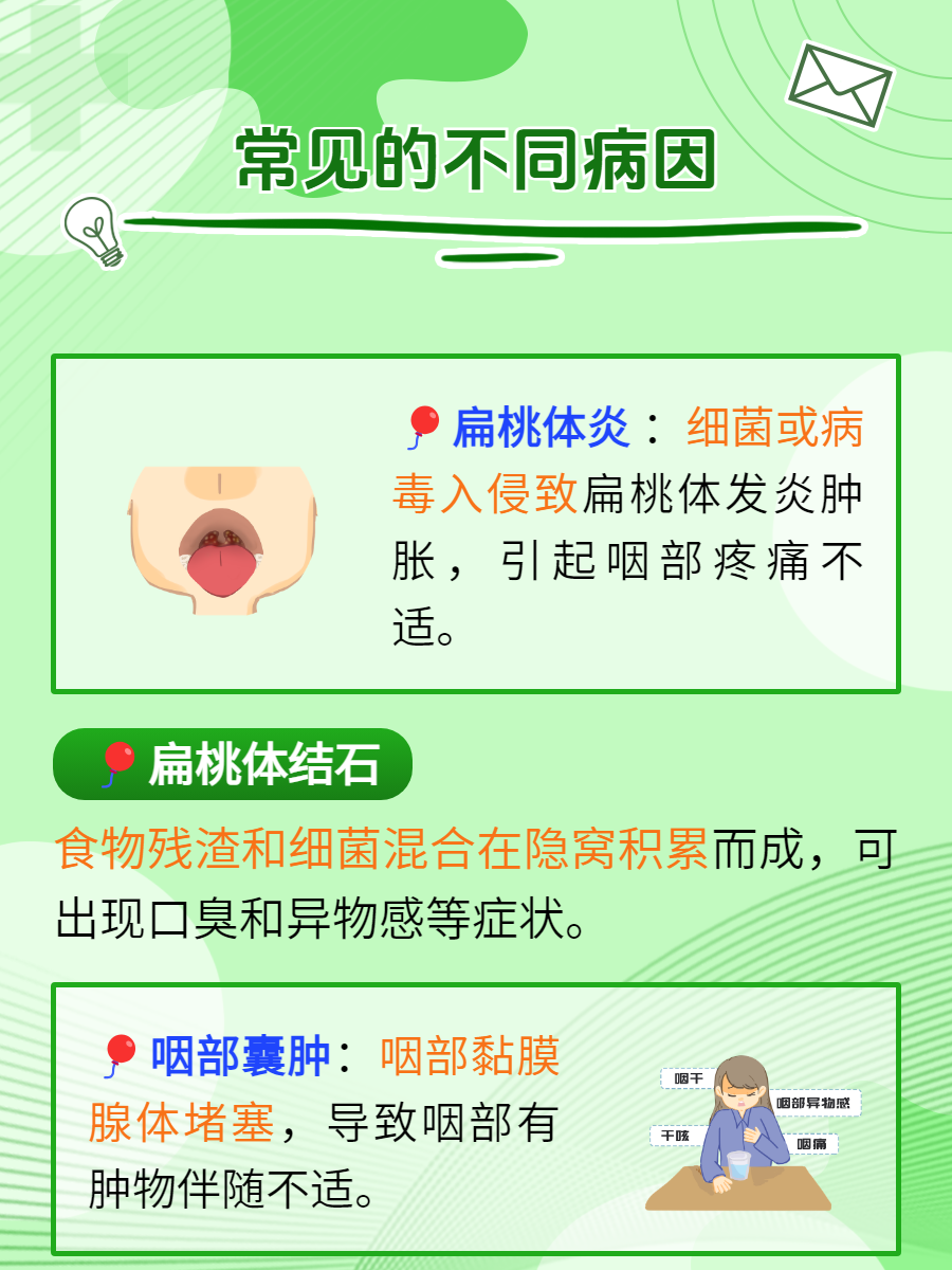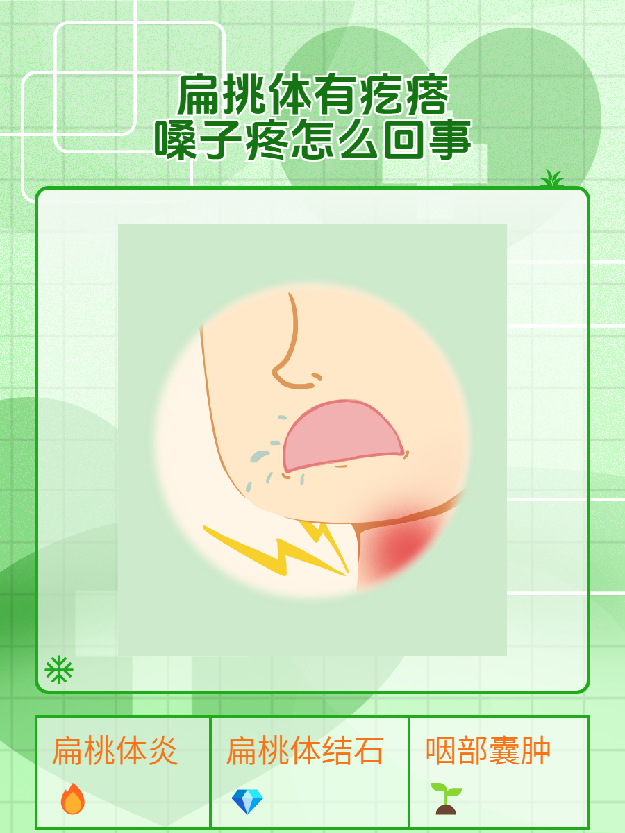 📌扁桃体有疙瘩、嗓子疼可能是以下几种情况:
