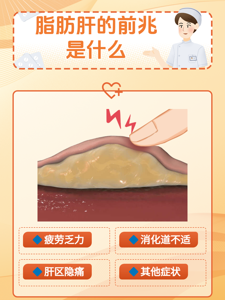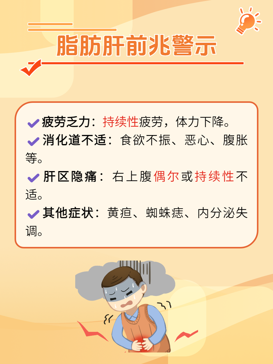 消化道不适:食欲不振、恶心、呕吐、腹胀等消化道症状,也是脂肪肝的常见前兆。这些症状虽然常见,但往往被忽视,需要我们提高警惕。🤢💨
