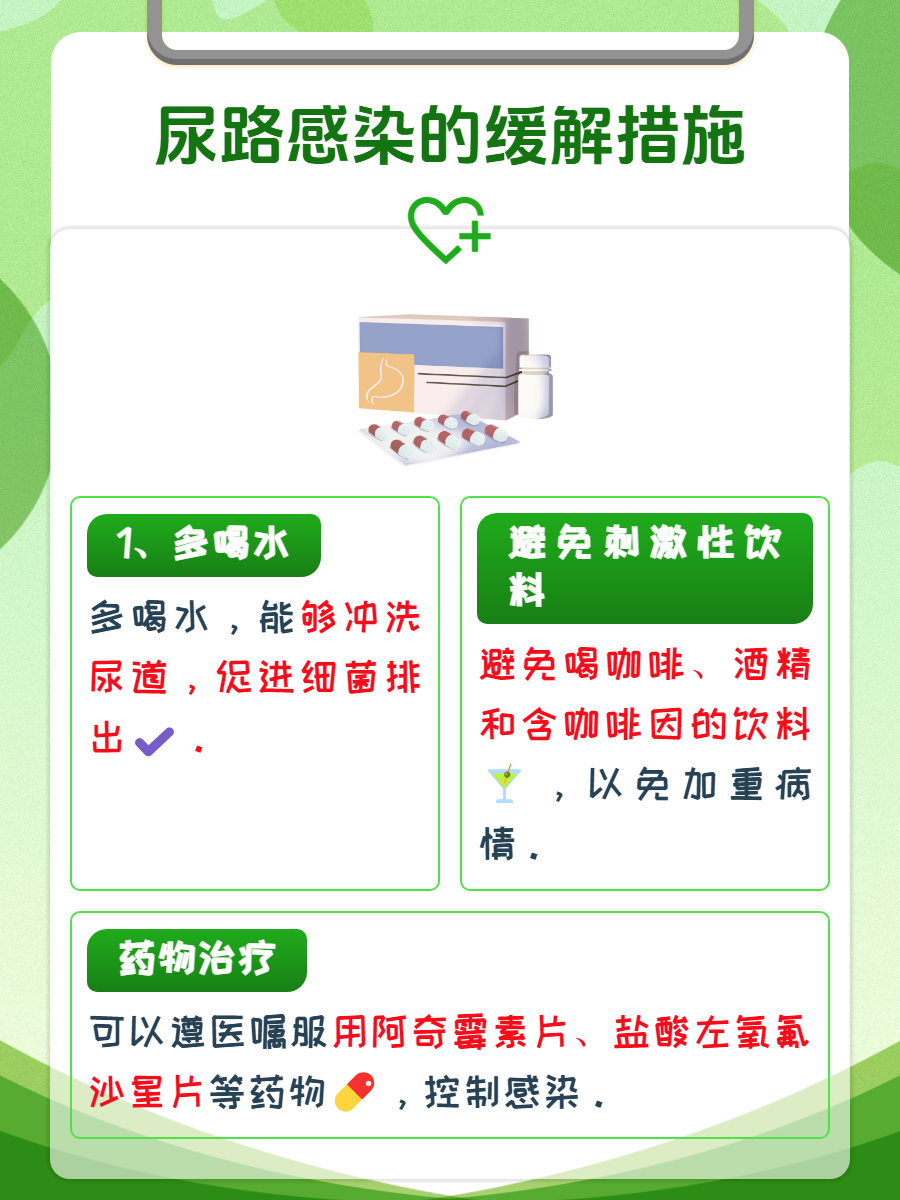 🍭1、多喝水:增加水分摄入可以帮助冲洗尿道,减少细菌。