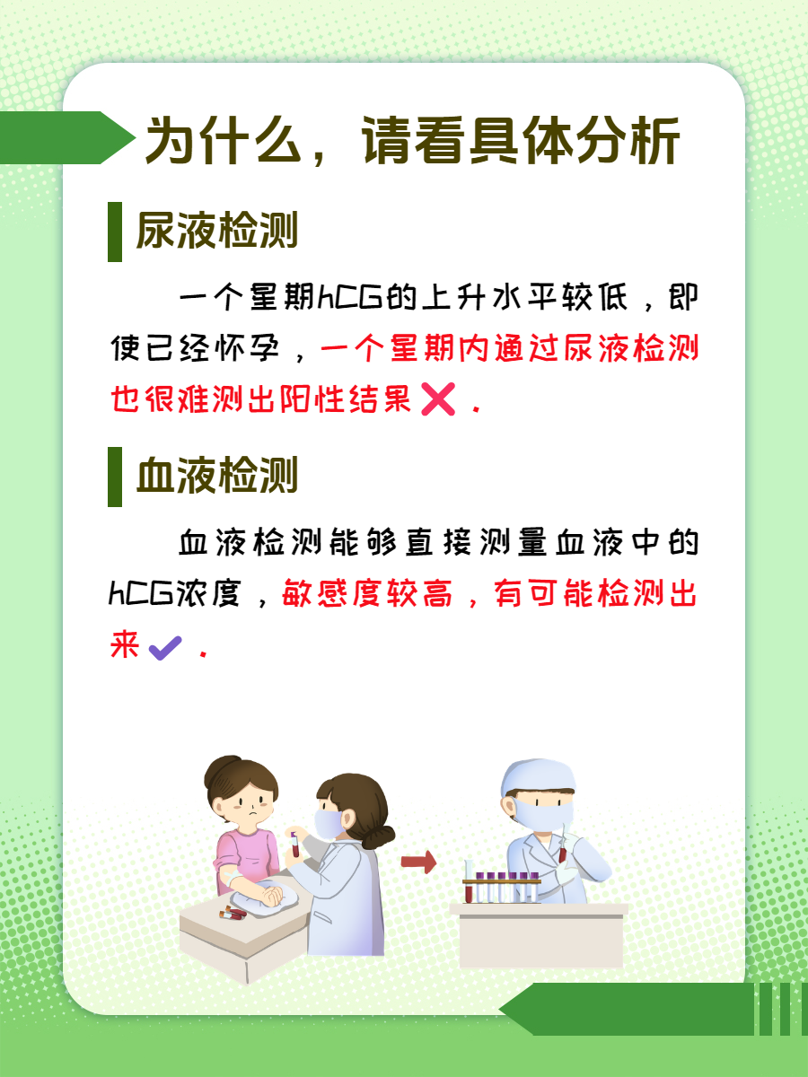 ❤️我认为,一个星期的时间对于hCG水平的上升来说,往往还显得太短。在大多数情况下,即使已经怀孕,一个星期内通过尿液检测也很难测出阳性结果。因为尿液中的hCG浓度相对较低,且需要一定的时间才能积累到可检测的水平。虽然尿液检测可能无法给出明确答案,但血液检测却有可能更早地揭示真相。血液检测能够直接测量血液中的hCG浓度,其敏感度远高于尿液检测。💖