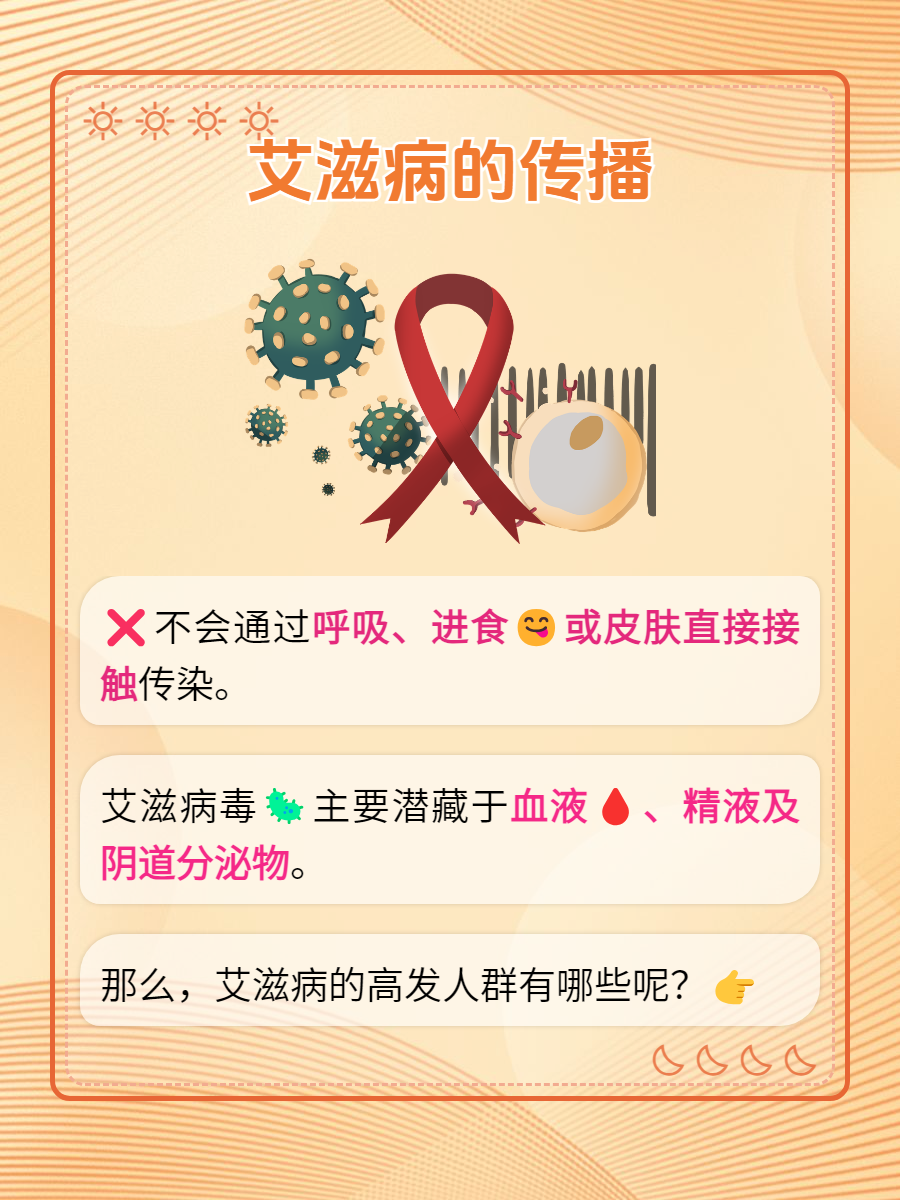🤝 值得注意的是,艾滋病病毒并不会通过日常的生活接触传播。比如,与艾滋病人握手、拥抱、共餐、共用卫生间或办公用品等,都不会导致艾滋病的传染。因为艾滋病病毒主要存在于感染者的血液、精液、阴道分泌物等体液中,而不会通过呼吸道、消化道或皮肤接触传播。💉