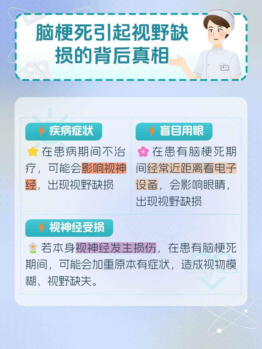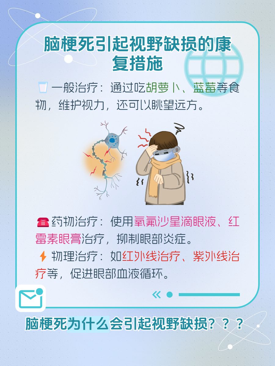 今日关于脑梗塞引起视野缺失的内容就分享到这儿,如果仍然抱有疑惑,我们可以点关注或后台私信我哦,会一一为大家解答困惑!!!