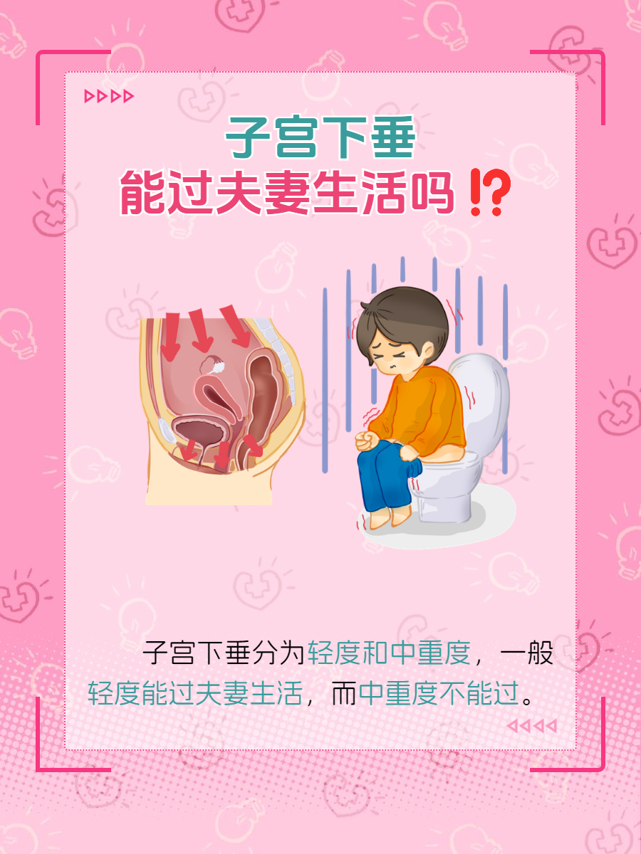 🔍轻度:对于轻度子宫下垂的女性而言,🛡️通常没有明显的症状,或者症状较为轻微,如仅有轻微的腰骶部酸痛或下坠感。在这种情况下,😊我认为,夫妻生活一般不会受到太大的影响,通常可以正常进行。但是在夫妻生活时,🛡️应当避免过度用力或采取不当的姿势,🔥以免加重子宫下垂的程度。