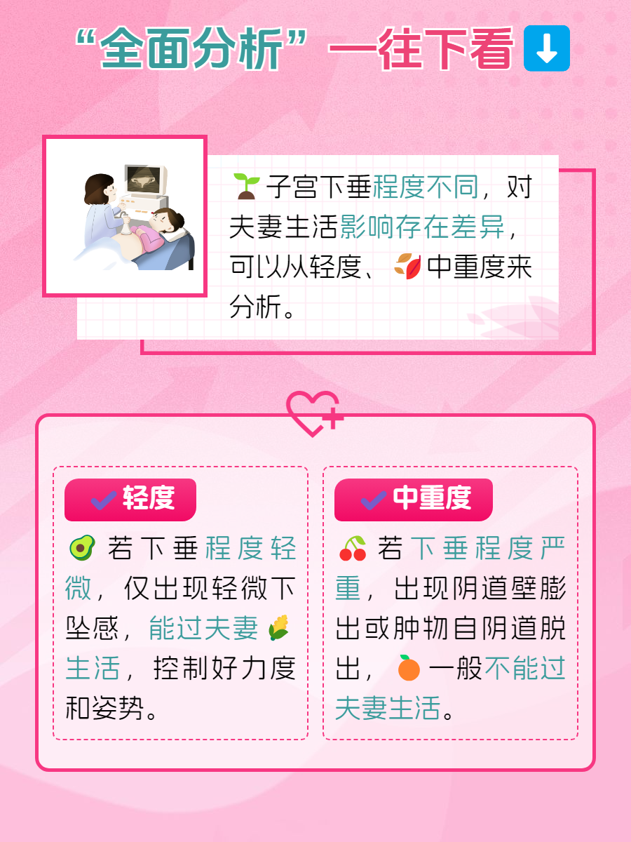 🔥每位女性子宫下垂的程度不同,😊因此对夫妻生活的影响因人而异,具体情况取决于下垂的严重程度及个体差异,我们可以从轻度、中重度两个方面来了解。