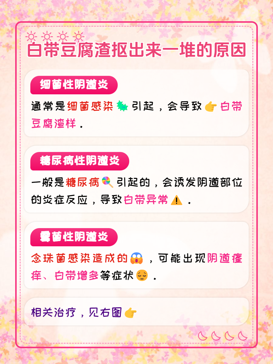 白带豆腐渣抠出来一堆相信多数女性都不陌生,如果病情严重,还可能会对正常的生活造成影响。经常有人问我白带豆腐渣抠出来一堆是什么原因引起的,今天我便为大家分享一下。👇