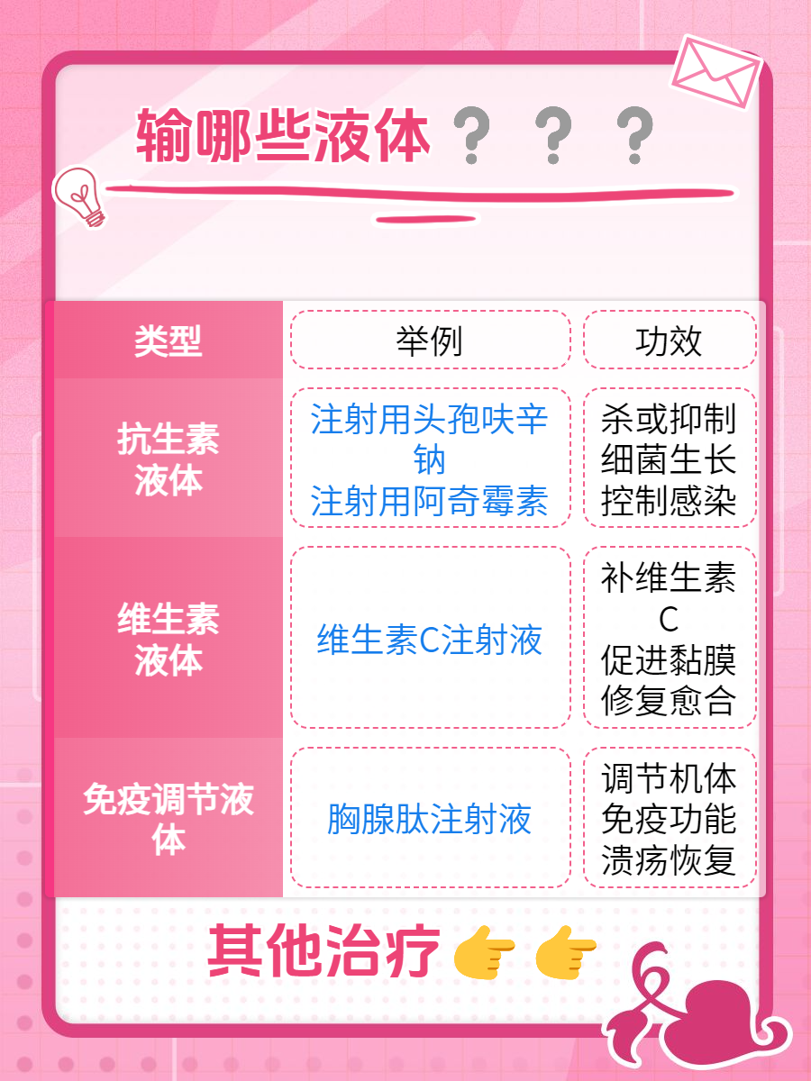口腔溃疡可以输以下几种液体:
