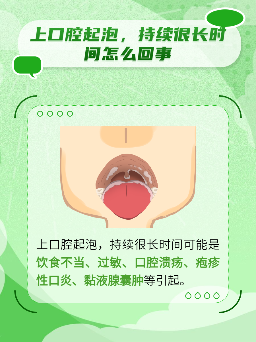 此外,疱疹性口炎、黏液腺囊肿等也可能会引起上口腔起泡的情况。