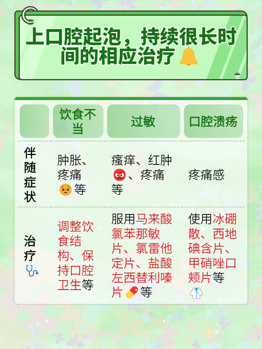若上口腔起泡持续不愈或症状加重,建议及时就医,以便得到准确的诊断和治疗。